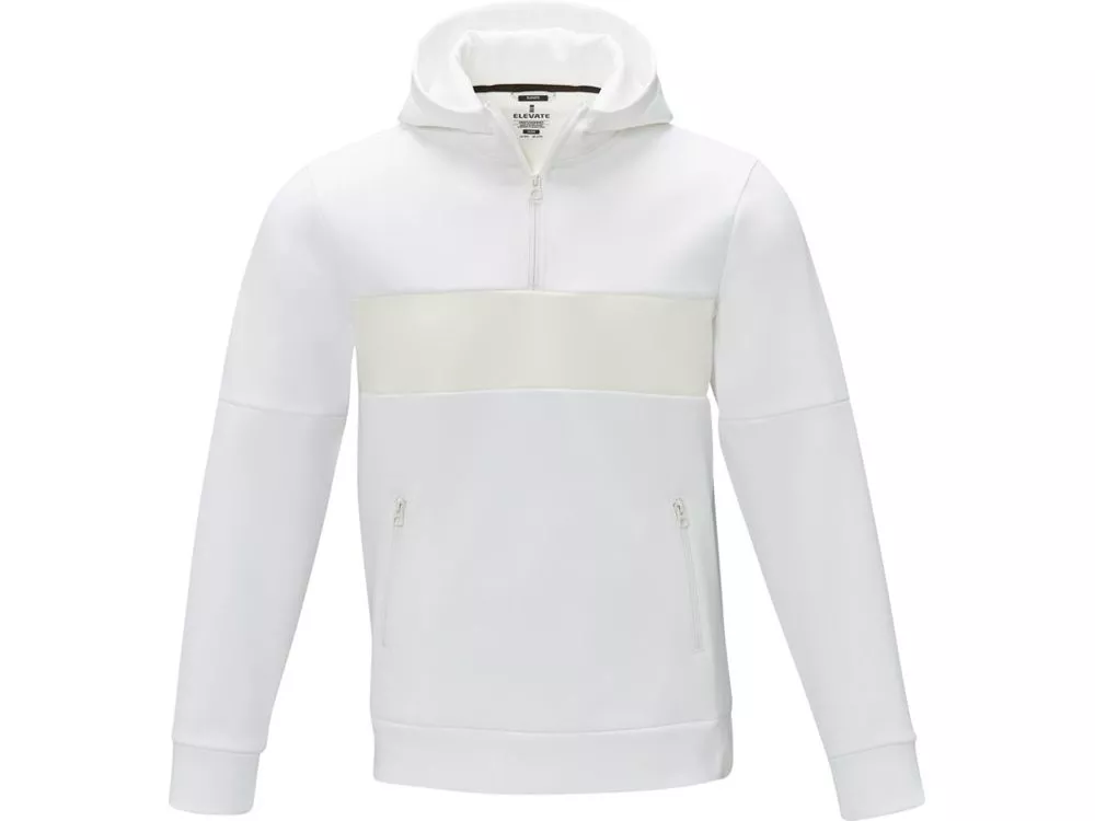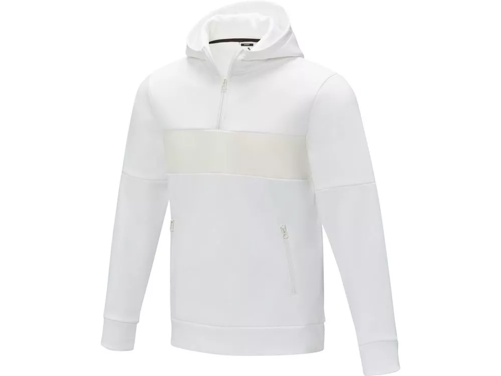Молния на четверть длины. Модель анорак. Передние карманы с застежкой-молнией. Петля для подвешивания с фирменной символикой. Бегунки застежки-молнии с простой фиксацией. Главный лейбл нанесен методом термоприклеивания, удобным для размещения рисунков на ткани.