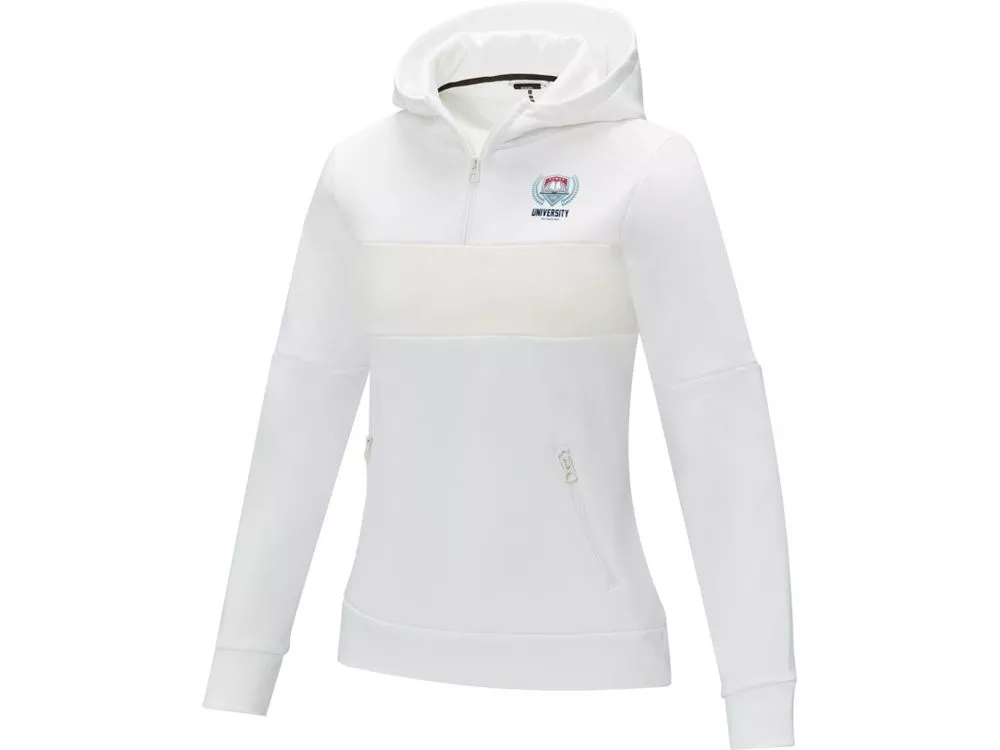 Молния на четверть длины. Модель анорак. Передние карманы с застежкой-молнией. Петля для подвешивания с фирменной символикой. Бегунки застежки-молнии с простой фиксацией. Фигурные швы и зауженная талия для идеальной посадки. Главный лейбл нанесен методом термоприклеивания, удобным для размещения рисунков на ткани.