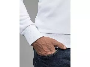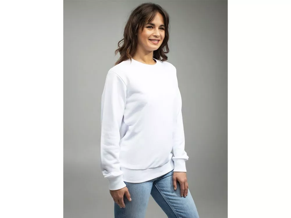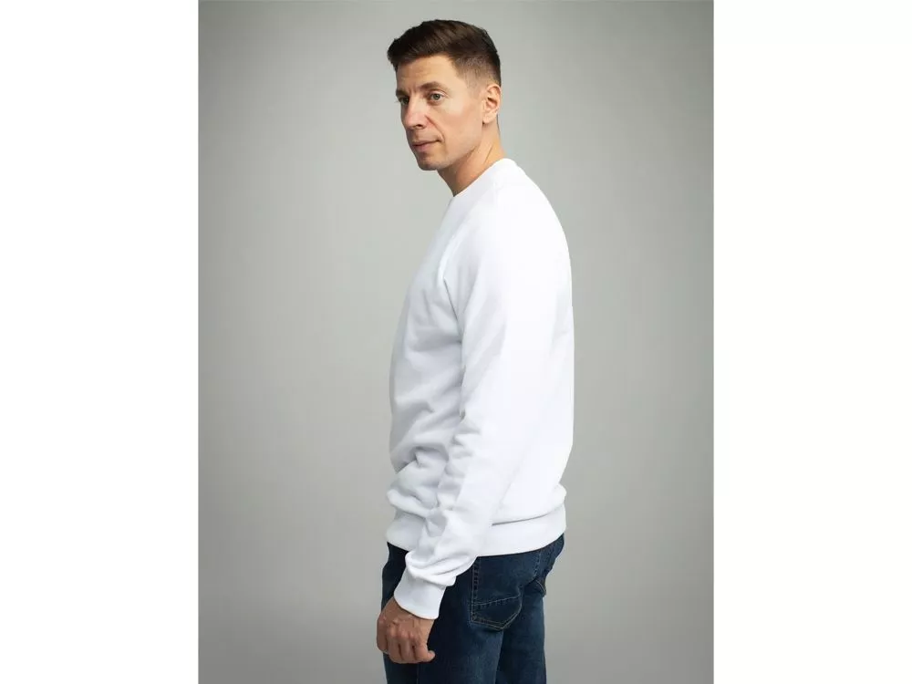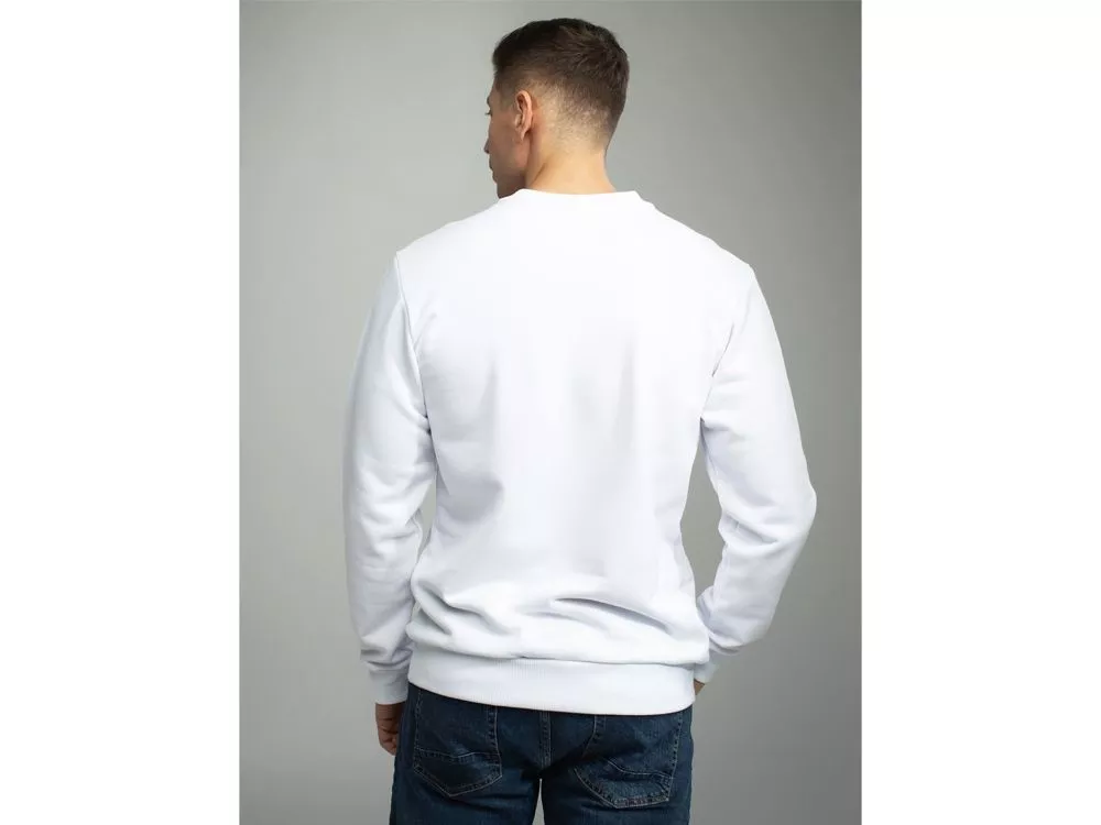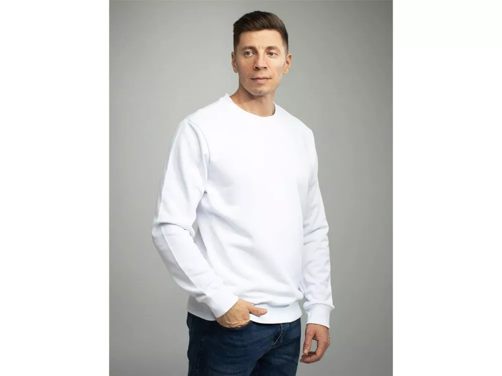 Свитшот прямого кроя с круглой горловиной и втачным рукавом. Особенности плетения полотна позволяют добиться эффекта 100% хлопка с внутренней стороны, обеспечивая гипоаллергенность и комфорт при носке, и 100% полиэстера с внешней стороны изделия, обеспечивая яркость красок нанесения и их износостойкость. Горловина, манжеты и низ зделия выполнены из полотна Кашкорсе (95% хлопок и 5% спандекс). Трафаретная печать (1 цвет (белые изделия)) на данный товар осуществляется бесплатно. Оплачивается только настройка оборудования в размере 5300 рублей на весь тираж.