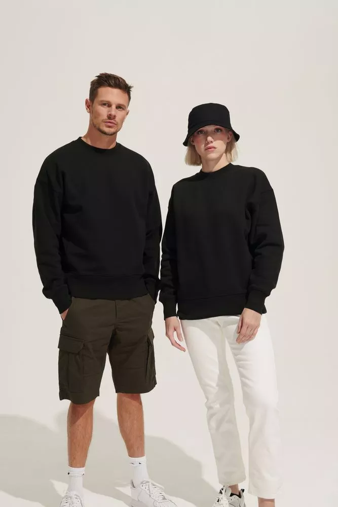 Свитшот оверсайз унисекс со спущенным плечом и широким поясом.