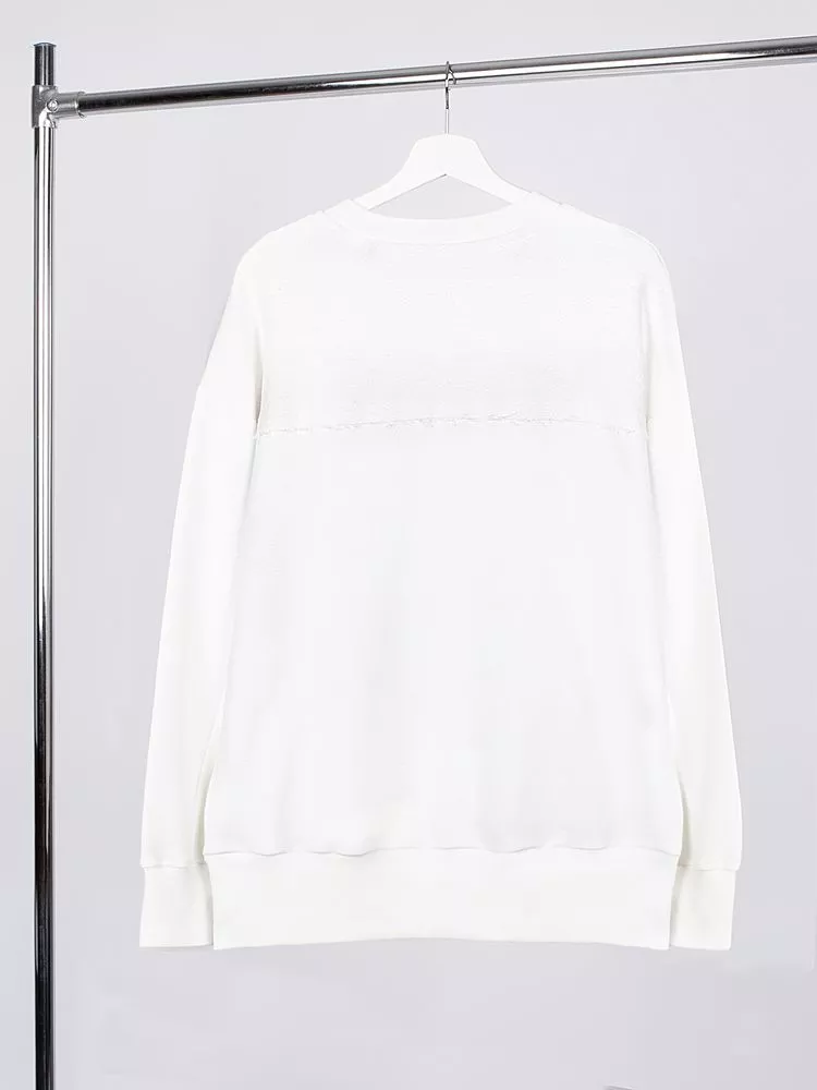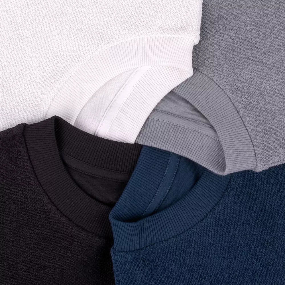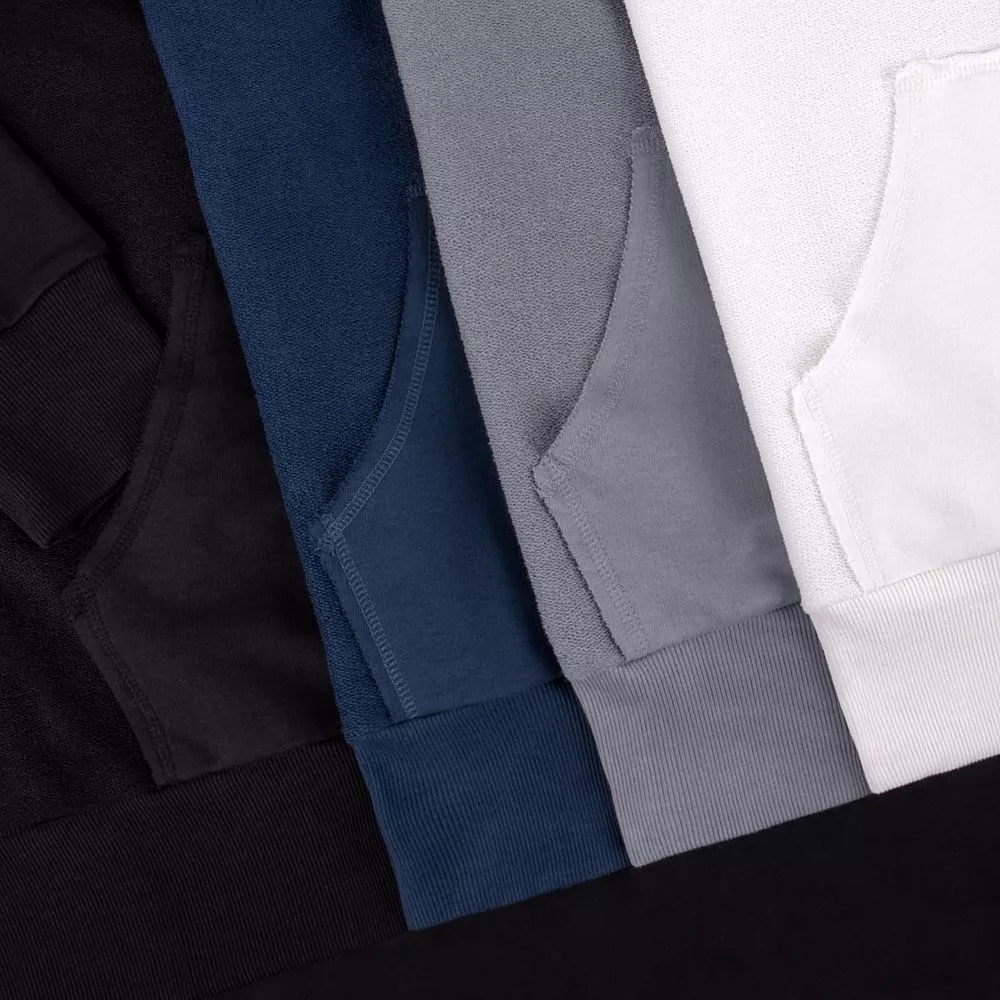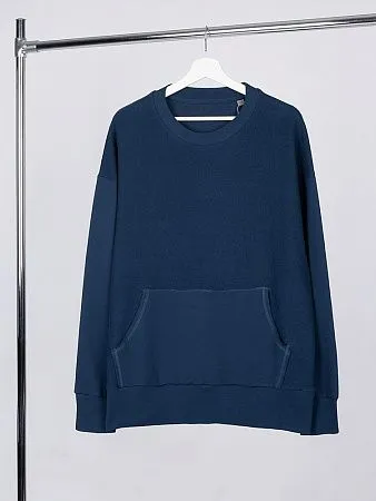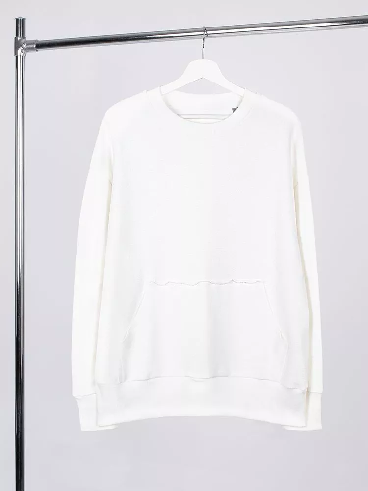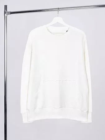 Благодаря особой конструкции, где часть деталей — перед и спинка — вывернута наизнанку, свитшот приобретает запоминающийся вид. Так внутренняя, обычно незаметная, сторона материала превращается в лицевую: миниатюрные петельки бывшей изнанки становятся настоящим украшением толстовки, добавляя ей оригинальности и эффект невероятно приятной плюшевости.