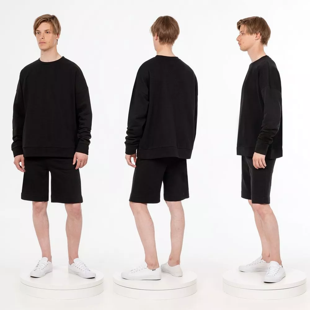 Базовая повседневная одежда актуального покроя в стиле унисекс разработана в рамках единой коллекции и легко собирается в комплекты. Специально спроектированные лекала и технологии пошива открывают простор для любых вариантов кастомизации и нанесения изображений. На изделиях нет лейблов с айдентикой бренда — но предусмотрены петельки для навешивания индивидуальных этикеток.