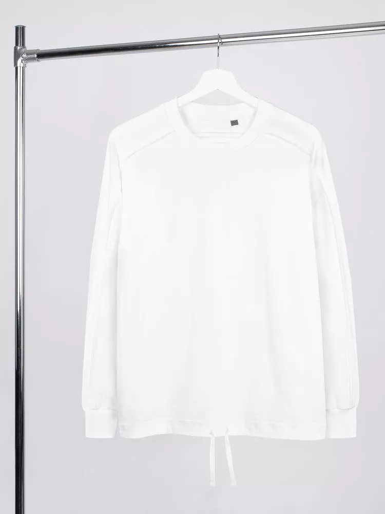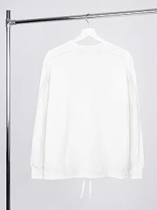 Свитшот унисекс оригинального пошива вдохнет новую жизнь в повседневный гардероб и добавит стильную нотку легкой небрежности в образ. Особая конструкция, где часть деталей — плечи и рукава вывернуты наизнанку, что создает необычный притягательный эффект.