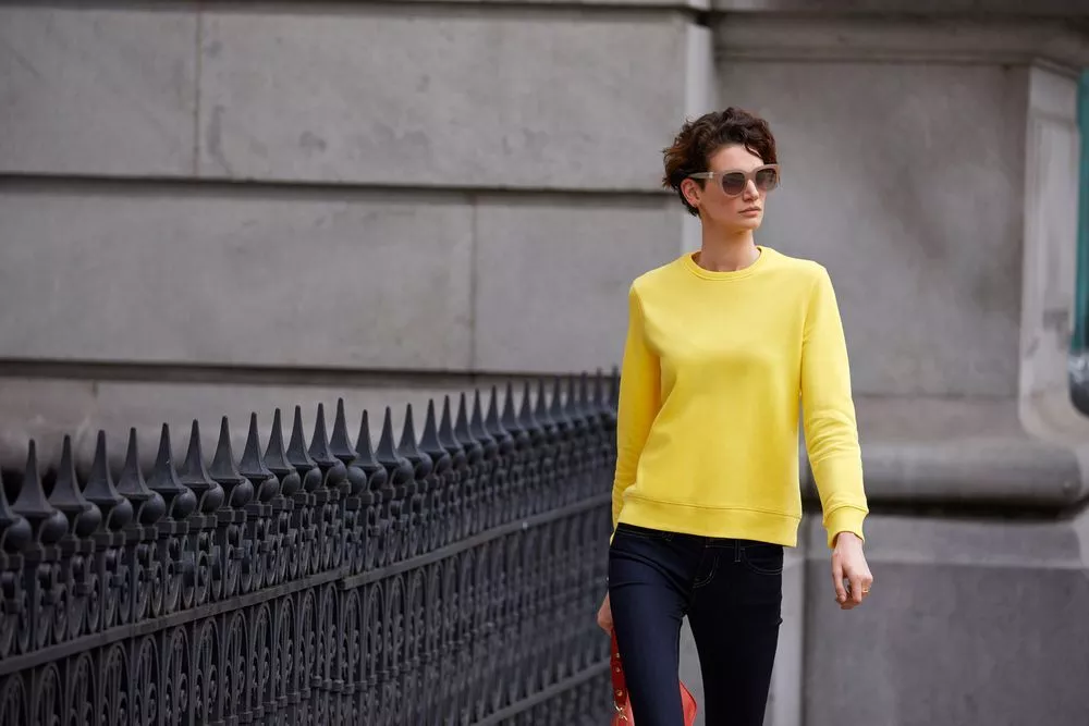 Кроеный женский свитшот. Манжеты, ворот и низ изделия отделаны резинкой. Внутренняя сторона с начесом.