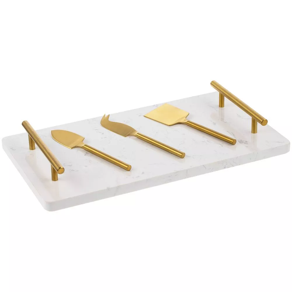 Сырный набор Chambery — выбор искушенных гурманов. В этом сете роскошно и продуманно все: изысканная кварцевая доска со специальными «ножками» для устойчивости и удобными ручками, а также стильные функциональные ножи для нарезки сыров разных сортов и твердости. Ведь на идеальной сырной тарелке обязательно должно быть несколько сортов!