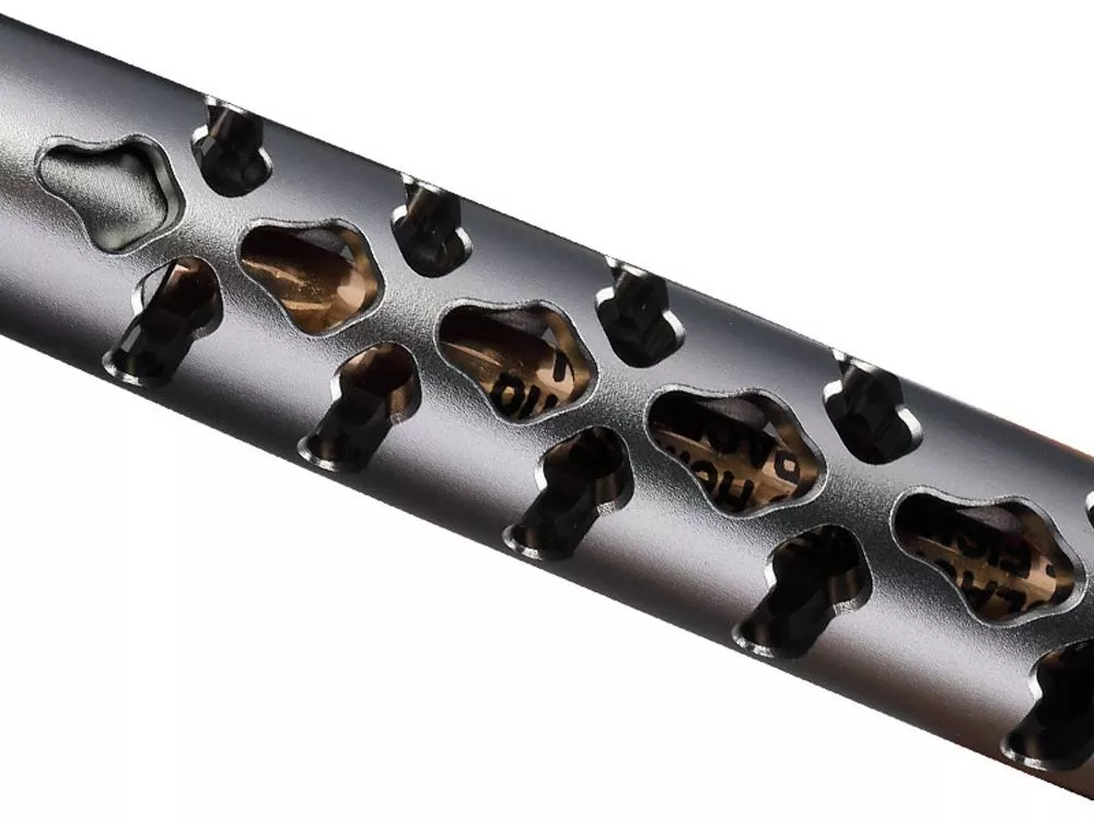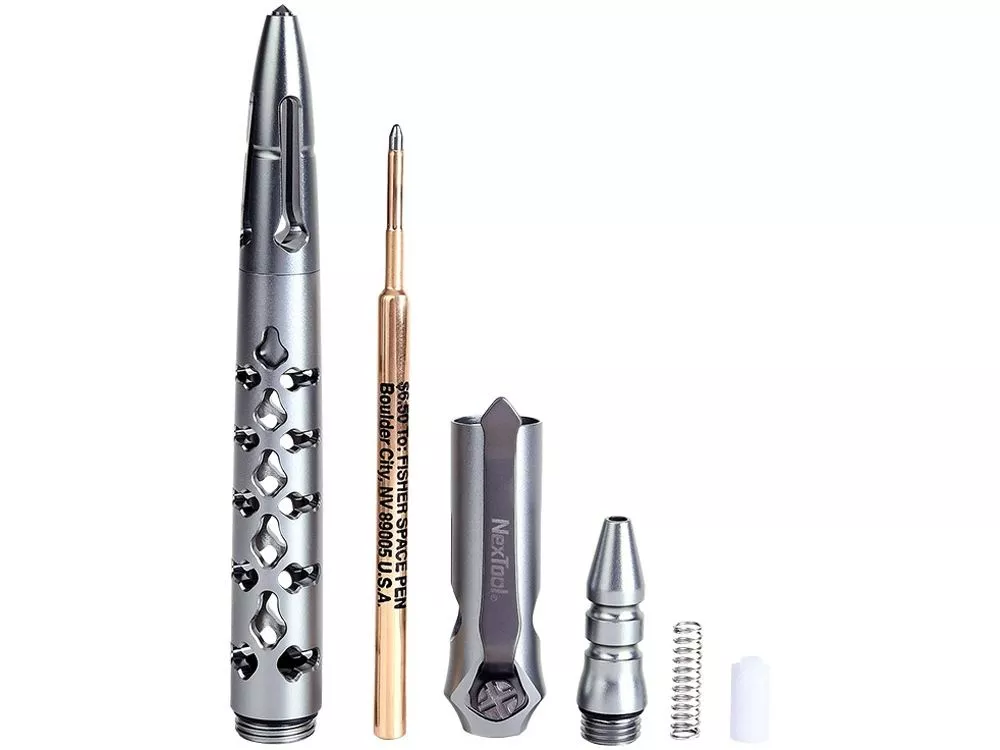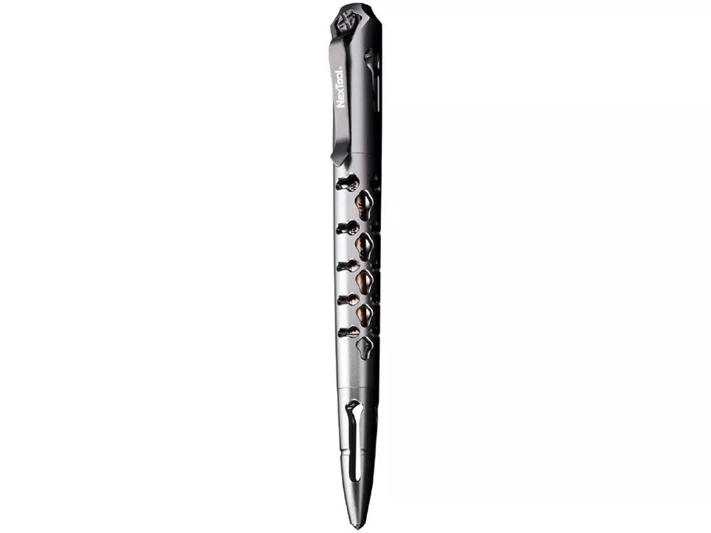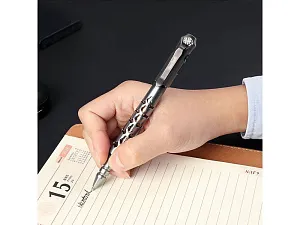 Тактическая ручка с вольфрамовой головкой и аэрокосмическим стержнем; материал корпуса: алюминий авиационного класса 6060-T6. Данный экземпляр весит всего 22 г, что практически вдвое легче куриного яйца. В качестве материала, из которого был изготовлен корпус, использовался специальный алюминиевый сплав марки T7075. Корпус изделия устойчив ко внешним повреждениям, сколам и царапинам, он не боится воды, грязи и пыли. Примечательно, что подобного рода алюминий используется в аэрокосмической промышленности. Корпус ручки разделен на 2 части, плотно скрепленных между собой специальной резьбой. Перо данного изделия изготовлено из высокопрочной нано-керамики. Ручка тактическая совместима с картриджем обычного размера. Стеклобой из вольфрамовой стали идеален для самообороны. Особенности: заменяемый стержень, с колпачком. Форма наконечника: конусообразная. Материал корпуса ручки шариковой: алюминий авиационного класса 6060-T6. Благодаря особой конструкции стержня ручка пишет: при температуре от -35 до +121С; на жирной поверхности; на глянцевой поверхности; под водой; под любым наклоном; в перевернутом положении. Длина ручки ножа 145 мм.