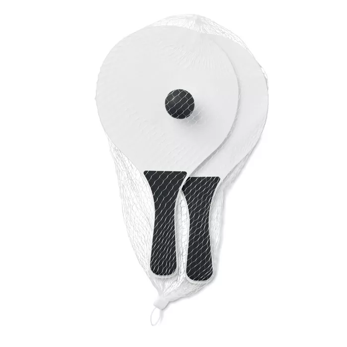 Набор для пляжного тенниса: 2 деревянные ракетки и мячик.