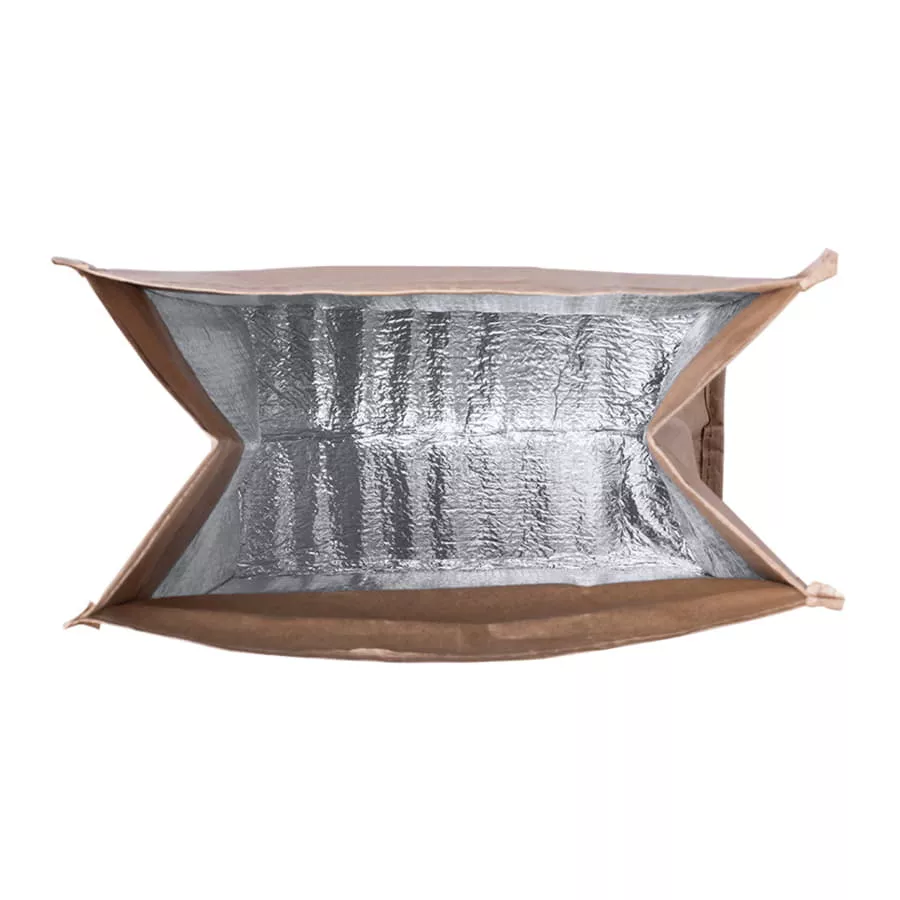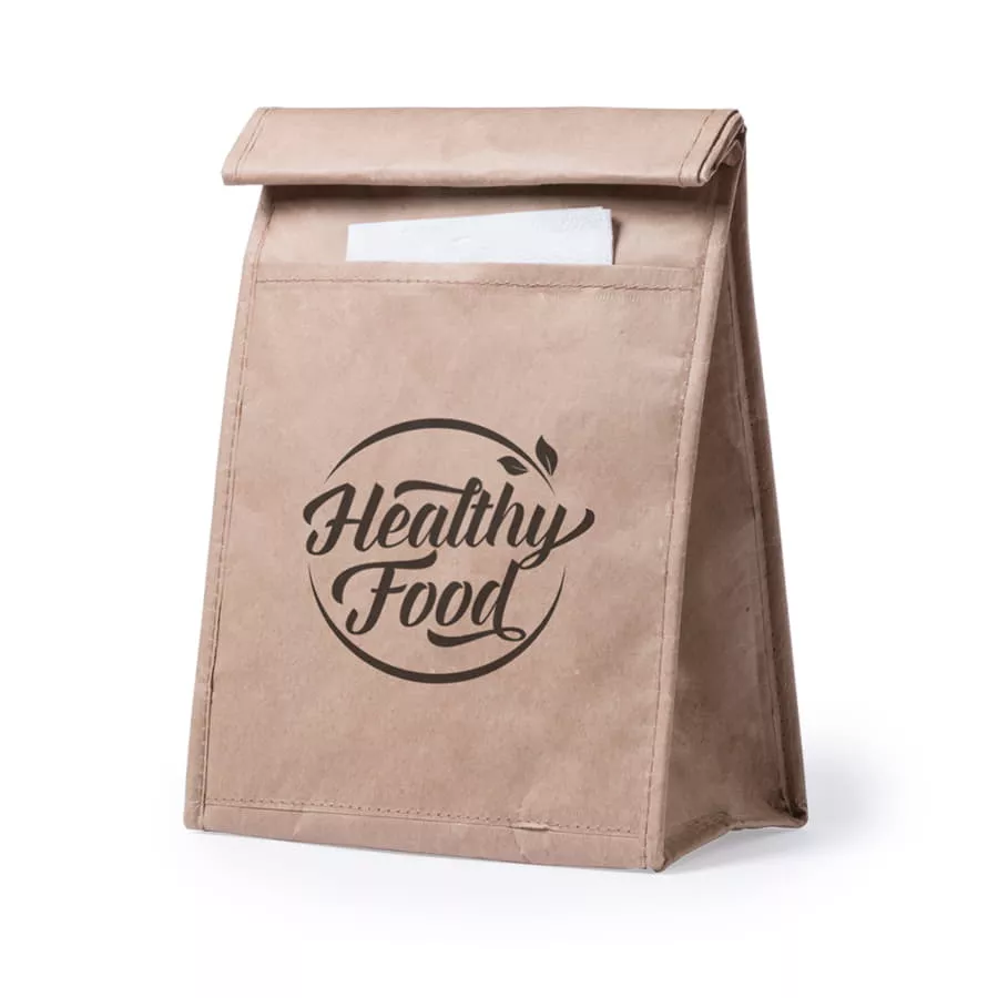 Термо-пакет выполнен из прочной ламинированной бумаги 85г м2 с алюминиевой подкладкой для сохранения температуры. Застежка велкро, удобный внешний карман. Объем 2,3 литра.