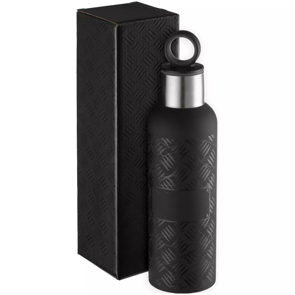 Нанесите логотип на бутылку — и он будет выгодно выделяться на фоне запоминающегося узора серии Hard Work Black .