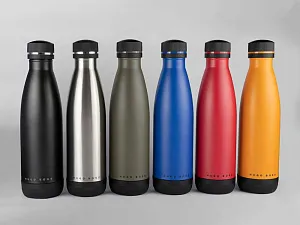Многоразовая бутылка Gear Matrix сочетает в себе экологичность и стиль. Яркий дизайн и изысканные детали бутылки, предназначенной для переноски как горячих, так и холодных напитков, перекликаются с активным стилем остальной линии, создавая смелую вселенную функциональных аксессуаров. Доступна в синем, красном, хаки, желтом, черном и серебряном цветах. Силиконовое основание бутылки из АБС-пластика имеет легкую амортизацию, которая помогает сохранить поверхности, на которые ставится бутылка, и уменьшить шум при ее опускании. Она сделана так, чтобы ее можно было легко носить с собой. Герметичная крышка из ABS-силикона с логотипом HUGO BOSS сохраняет напиток горячим или холодным в течение 16 часов. Трафаретная печать круговая (1 цвет (цветные изделия)) на данный товар осуществляется бесплатно. Оплачивается только настройка оборудования в размере 5100 рублей на весь тираж.