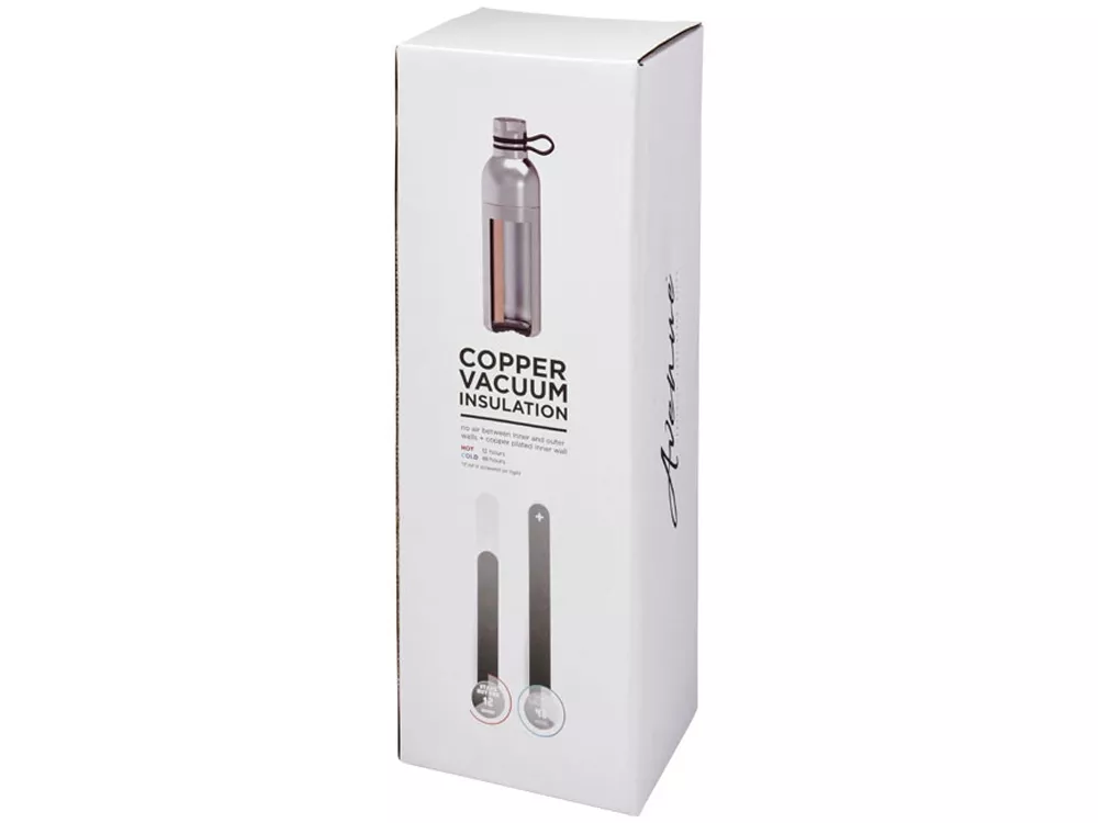 Медная спортивная бутылка с вакуумной изоляцией Koln объемом 590 мл. Двустенная вакуумная конструкция из нержавеющей стали с медной изоляцией позволит вашему напитку оставаться холодным в течение 48 часов и горячим — как минимум 12 часов. Кроме того, конструкция препятствует образованию конденсата на внешней стороне бутылки. Оснащена закручивающимся колпачком и крышкой из нержавеющей стали с удобной силиконовой петлей-держателем. Конструкция с двойным отверстием для легкой очистки и заполнения. Объем — 590 мл. Упакована в подарочной коробке Avenue. Нержавеющая сталь.