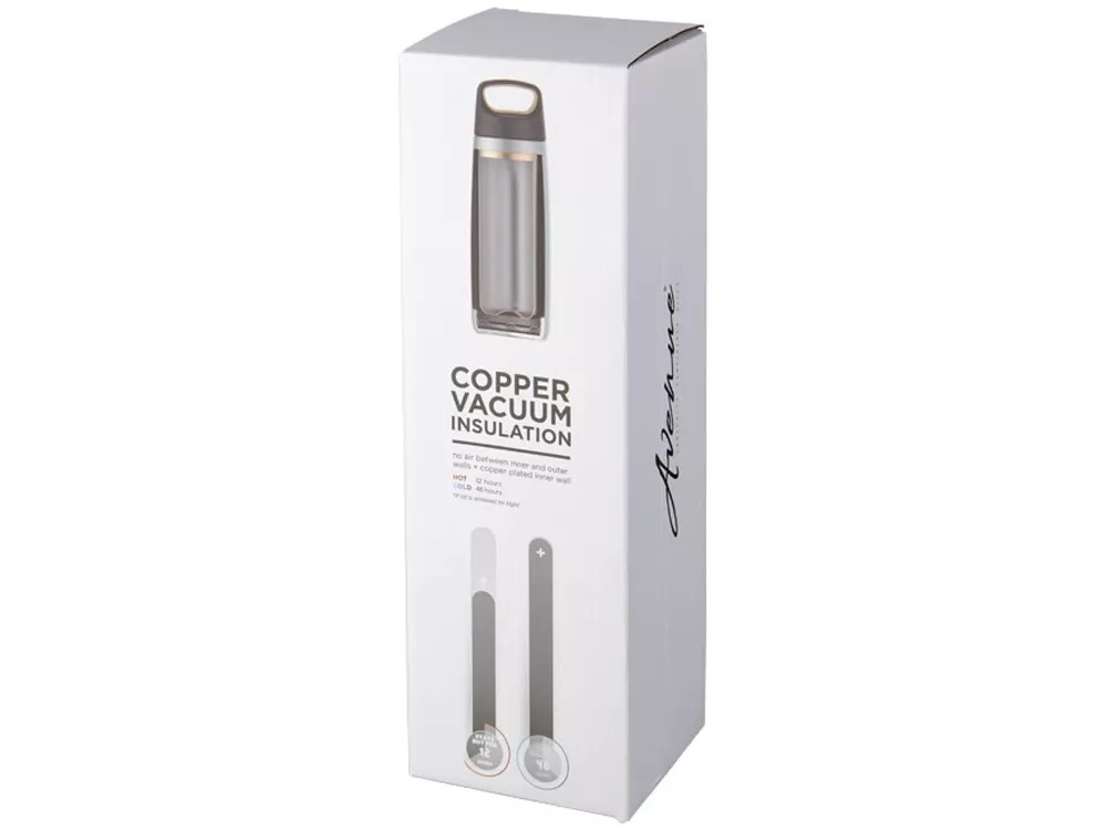 Спортивная медная бутылка с вакуумной изоляцией Valhalla объемом 600 мл. Двустенная вакуумная конструкция из нержавеющей стали с медной изоляцией позволит вашему напитку оставаться холодным в течение 48 часов и горячим - как минимум 12 часов. Кроме того, конструкция препятствует образованию конденсата на внешней стороне бутылки. Закручивающаяся крышка с элементами из пробки и противоскользящее дно. Объем - 600 мл. Упакована в подарочной коробке Avenue. Стальной корпус с пробкой.