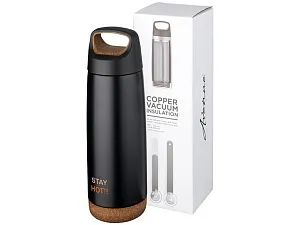 Спортивная медная бутылка с вакуумной изоляцией Valhalla объемом 600 мл. Двустенная вакуумная конструкция из нержавеющей стали с медной изоляцией позволит вашему напитку оставаться холодным в течение 48 часов и горячим - как минимум 12 часов. Кроме того, конструкция препятствует образованию конденсата на внешней стороне бутылки. Закручивающаяся крышка с элементами из пробки и противоскользящее дно. Объем - 600 мл. Стальной корпус с пробкой. Трафаретная печать круговая (1 цвет (цветные изделия)) на данный товар осуществляется бесплатно. Оплачивается только настройка оборудования в размере 5100 рублей на весь тираж.