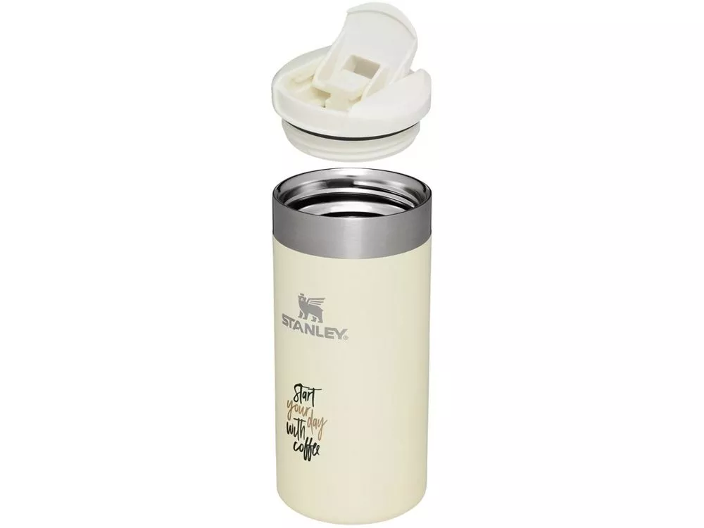 Дорожный стакан Stanley AeroLight™ объемом 350 мл с двойными стенками и вакуумной изоляцией имеет легкий вес. без ущерба для поддержания желаемой температуры жидкости, сохраняя напитки горячими в течение 6 часов или холодными в течение 8 часов. Стакан герметичен, имеет запирающуюся завинчивающуюся крышку. Это означает, что вам не придется беспокоиться о пролитой жидкости, когда вы бросаете бутылку в сумку, садитесь в поезд или начинаете тренировку. Кроме того, стакан AeroLight™ можно мыть в посудомоечной машине, он не содержит BPA и легко чистится. Подходит для большинства автомобильных подстаканников. Удобные для поездок на работу дорожные стаканы на 33 % легче стандартной посуды для напитков Stanley из нержавеющей стали. нержавеющая сталь.