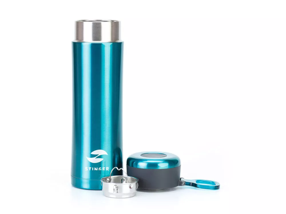 ТЕРМОКРУЖКА STINGER 0,42 Л СВОЙСТВА: Тип термоса: для горячих и холодных напитков Материал корпуса: двухслойная нержавеющая пищевая сталь 18/8 Тип крышки: закручивающаяся Материал крышки: пластиковая без бисфенола А (BPA free) Объём термоса: 0,42 л Размер термоса: 7,5 х 6,9 х 22,2 см Вес термоса: 346 г Цвет: изумрудный металлик ХАРАКТЕРИСТИКИ: Сохраняет температуру: Горячий напиток: через 6 часов температура наполняемой жидкости 71℃ Холодный напиток: через 6 часов температура наполняемой жидкости 7,5 ℃ ОСОБЕННОСТИ: Ситечко для заварки чая или кофе Кольцо для удобства переноски Подходит под любые автомобильные подстаканники
