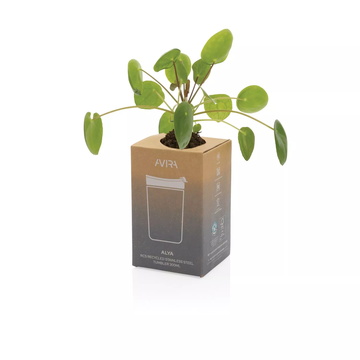 Наслаждайтесь любимыми напитками, где бы вы ни были, с помощью стильной термокружки Alya от Avira. Двойные стенки позволяют поддерживать температуру чая или кофе в течение долгого времени. Напитки остаются горячими до 6 и холодными до 8 часов. Термокружка сделана из переработанной нержавеющей стали, сертифицированной RCS, и переработанного полипропилена. RCS (Recycled Claim Standard) — это стандарт для проверки содержания вторичного сырья в товарах. Без BPA. Содержание переработанных материалов: 94% от общего веса изделия. Объем 300 мл. Поставляется в крафтовой упаковке, сертифицированной FSC®. Подарите коробке вторую жизнь! Просто трансформируйте ее в подставку для телефона, держатель для письменных принадлежностей или цветочный горшок.