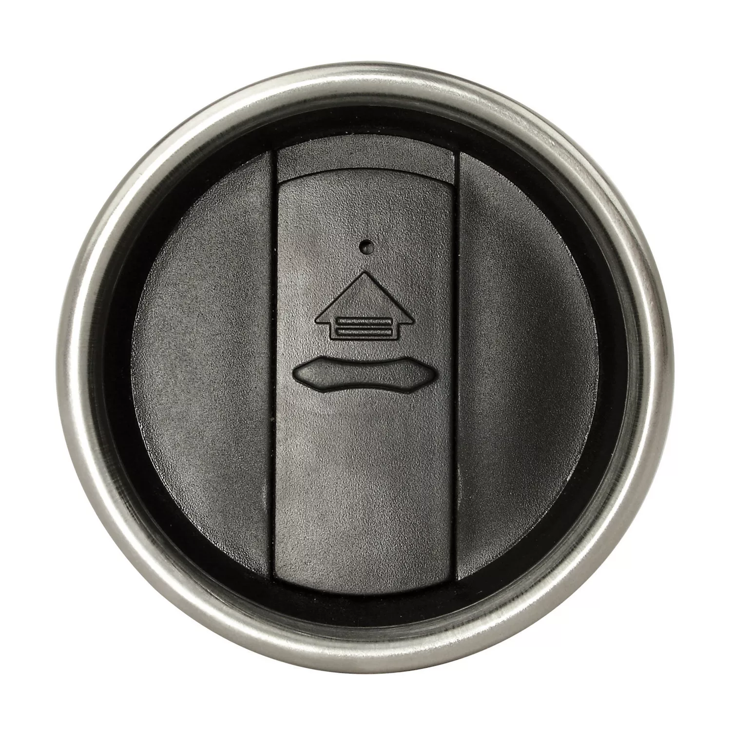 стали. Эта термокружка оснащена пластиковой крышкой, которая