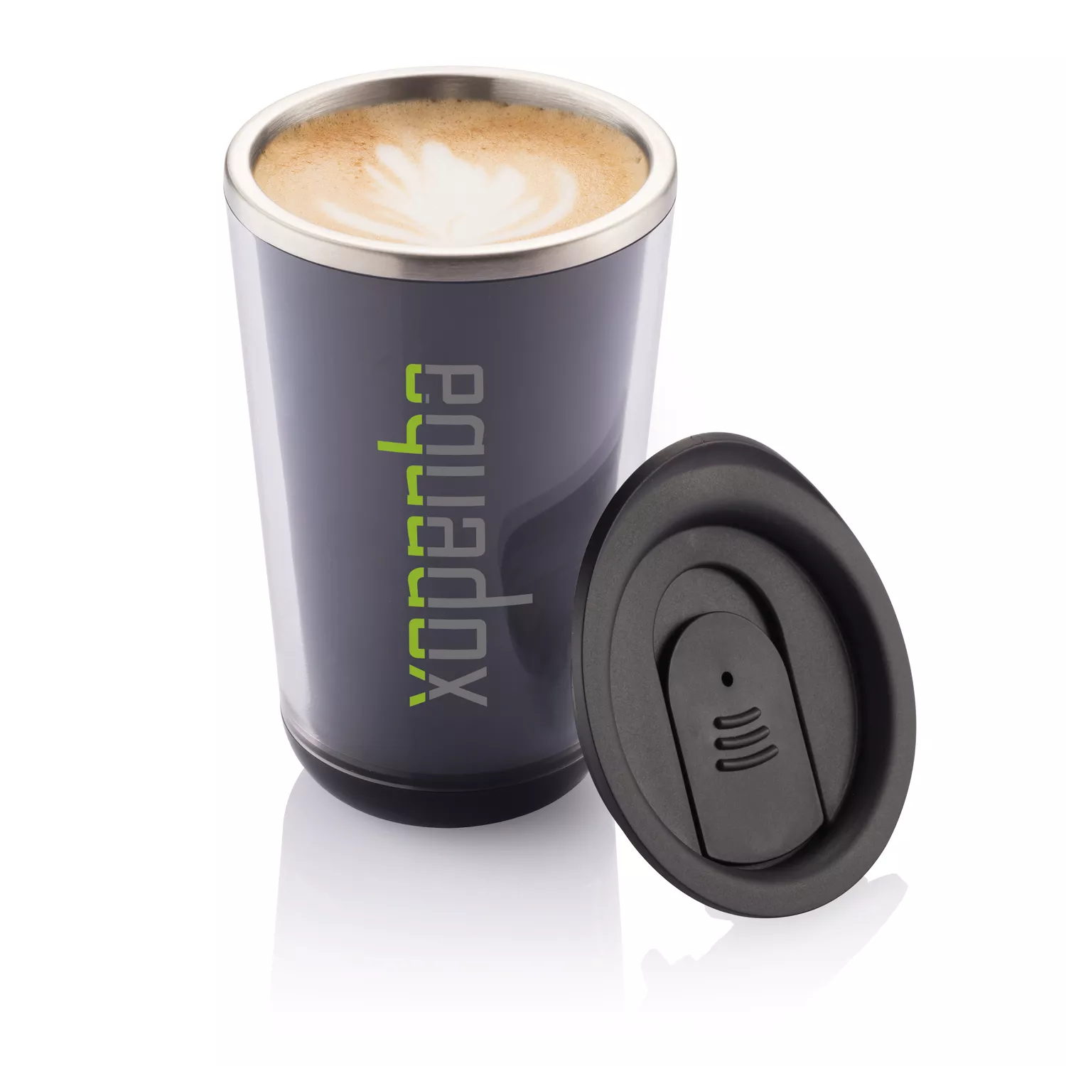 Термокружка Dia объемом 350 мл. Двойные стенки и внутренняя поверхность изготовлены из нержавеющей стали марки 304. Подходит как для горячих, так и для холодных напитков. Не содержит BPA. Спроектирована для легкой утилизации – теперь и вы сможете внести свой вклад в чистоту нашей планеты! Зарегистрированный дизайн®