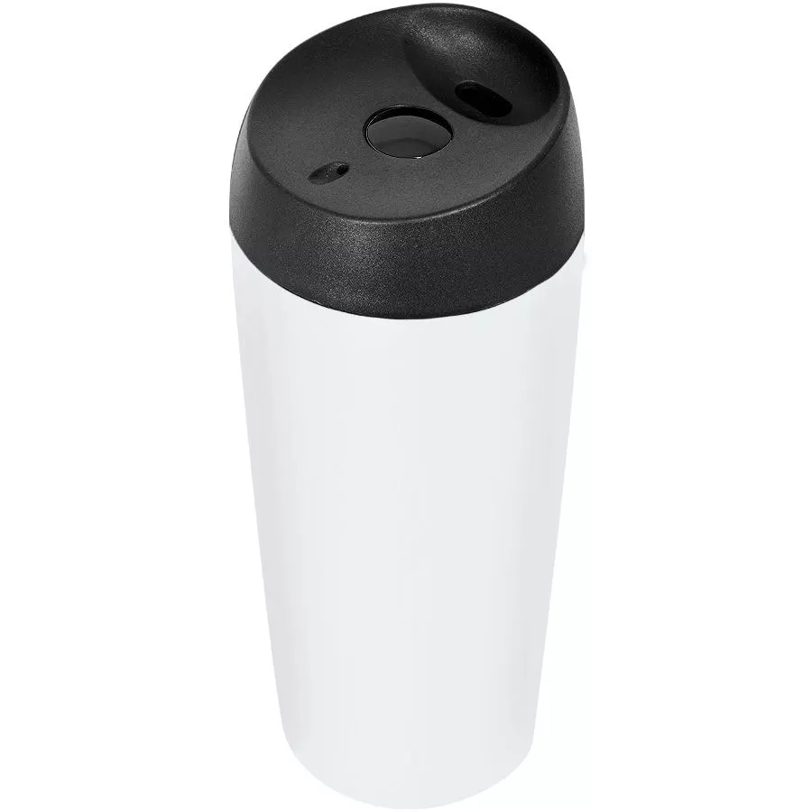 Герметичная кружка, открывается закрывается одним нажатием кнопки. Двойные стенки, нержавеющая сталь, матовое покрытие. Сохраняет тепло не менее 6 часов.