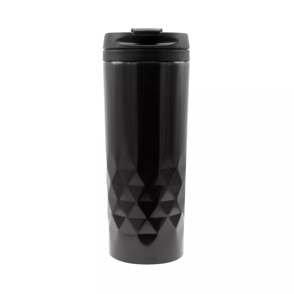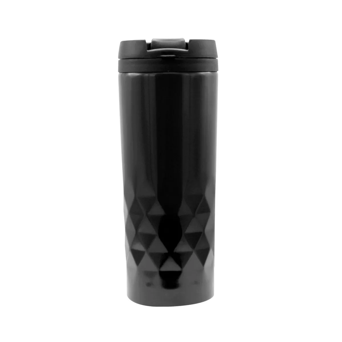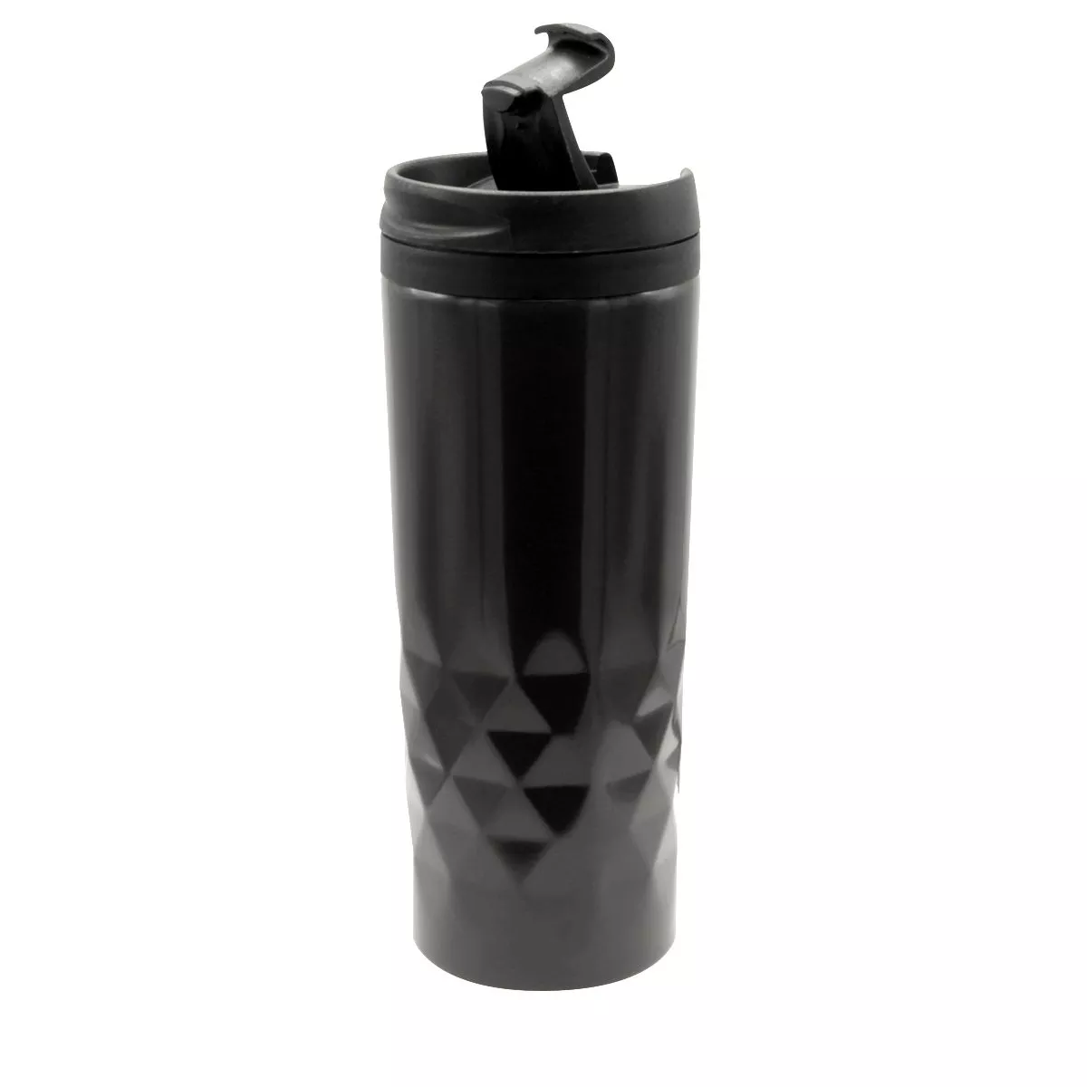 Стильная термокружка изготовлена из нержавеющей стали и дополнена оригинальными геометрическими деталями. Внутренняя колба сделана из пластика. Удобная крышка не даст расплескаться напитку. Объем термокружки – 500 мл.