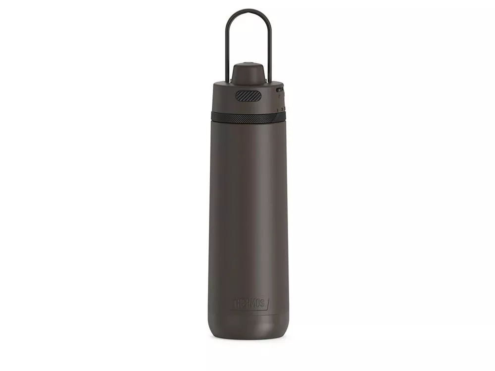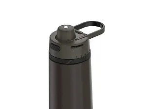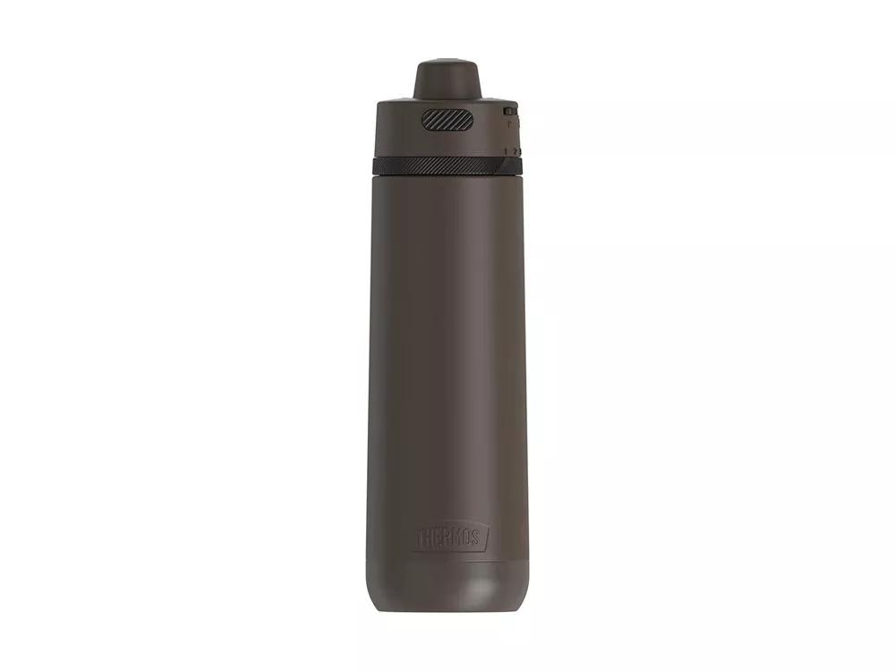 Ответственный хранитель воды – так можно назвать термобутылку серии GUARDIAN легендарного бренда THERMOS. В бутылке с вакуумной термоизоляцией вода сохранится именно той температуры, которая важна для спортивных занятий и тренировок, вне зависимости от того, лето на дворе или зима. Для того, чтобы было удобно пить во время движения, производителем разработана особая конструкция крышки-пробки. Она мгновенно открывается путём простого нажатия на кнопку, при этом крышка откидывается, фиксируется в открытом положении и не опрокидывается при питье. Для защиты от случайного открывания предусмотрен механизм блокировки крышки – достаточно сдвинуть рычажок на её корпусе в положение указателя замок. Поэтому герметичную термобутылку безопасно носить в сумке и рюкзаке либо снаружи – прикрепить с помощью петли, которая надёжно присоединена к крышке-пробке. В корпус крышки-пробки встроен счётчик количества употреблённых порций воды - на боковой стороне крышки-пробки есть цифровая шкала от 1 до 6, а на вращающейся нижней части – специальная метка. Теперь не надо запоминать, сколько порций воды вы выпили – после каждой выпитой за день бутылки переместите метку к соответствующей цифре. Комфорт при питье обеспечивает поильник в виде широкой трубочки с закруглёнными краями. Диаметр питьевого отверстия позволяет использовать термобутылку не только для хранения воды, но и густых напитков, а также спортивного питания. Термобутылка имеет эргономичную форму, слегка расширяющуюся к низу, а тактильное полимерно-порошковое покрытие имеет противоскользящий эффект, потому её не только удобно, но и приятно держать в руке. Изюминки внешнему виду придает рельефный логотип, выполненный методом конгревного тиснения. Размеры термобутылки подходят для большинства подстаканников автомобиля, а также для велосипедных держателей. Соответствие Международному стандарту качества EN12546-1:2000 подтверждает надёжность и безопасность термобутылки. Она изготовлена с применением инновационных технологий – вакуумной термоизоляции и бесшовной сварки. Первая обеспечивает длительное сохранение температуры хранящихся жидкостей, исключая нагрев или охлаждение корпуса, а вторая – прочность конструкции и сохранение вакуума в межстеночном пространстве в течение многих лет. Длительному сроку службы способствуют и материалы, из которых изготовлена термобутылка. Корпус и колба - из пищевой нержавеющей стали, которая устойчива к механическим воздействиям, нейтральна по отношению к содержимому, поэтому не влияет на вкусовые качества напитков. Крышка-пробка изготавливается из сополимеров нового поколения без применения бисфенола А (BPA free), которые отличаются термостойкостью и ударопрочностью, они не выделяют и не поглощают посторонние запахи. Обеспечивающие герметичность прокладка и уплотнитель – из долговечного пищевого силикона, устойчивого к воздействию высоких температур. Объём модели TS-4319 BK рассчитан на три полноценные порции напитка или воды, поэтому её можно брать с собой на длительную пробежку, велосипедную прогулку или лыжную гонку.