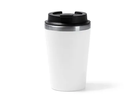Термостакан с двойными стенками. Внутренняя часть выполнена из нержавеющей стали 304, внешняя — из полипропилена. Крышка винтовая с дозатором. Объём: 350 мл. Поставляется в дизайнерской коробке.
