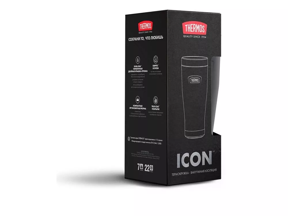 Когда ты видишь термокружку ICON™, то понимаешь, что и посуда из стали может быть шедевром. При её создании легендарный производитель THERMOS совместил традиционное качество, инновационные технологии, оригинальный дизайн и неизменное желание улучшить жизнь людей. Это сочетание сделало коллекцию ICON™ поистине культовой, узнаваемой и любимой во всём мире. Самое главное достоинство модели IS-1012 GT – способность сохранять напитки горячими и ароматными не менее 7 часов или холодными и свежими почти сутки. Длительное сохранение температуры обеспечивается благодаря глубокой вакуумной термоизоляции, особенностям конструкции и материалам, используемым при производстве термокружки. Термос полностью соответствует Международному стандарту качества EN12546-1:2000. Все материалы безопасны, не содержат бисфенол А (BPA free), термостойкие и ударопрочные, не выделяют и не впитывают посторонние запахи. Корпус и колба - из нержавеющей стали премиум-категории 18/8 AISI 304 Stainless Steel, инертной по отношению к содержимому, что позволяет сохранять не только температуру, но и вкус и аромат напитков. Технология бесшовной сварки и полировки делают внутреннюю поверхность термокружки супергладкой, поэтому на стенках колбы не задерживаются остатки напитков. Термокружку можно мыть в посудомоечной машине – на корпус нанесено порошковое полимерное покрытие True-Coat™, устойчивое к высоким температурам и механическим повреждениям. Практичное многослойное покрытие сохранит термокружку в состоянии новой в течение всего срока эксплуатации. Не подвержен износу и гравированный логотип, нанесённый при помощи лазера. Эргономичная форма и приятный тактильный эффект от покрытия создают особый комфорт при удержании термокружки в руке. В остальное время она прекрасно разместится в автомобильном подстаканнике или на любом, даже гладком, столе за счёт противоскользящего силиконового основания Griptec™. Ещё одно значимое преимущество компактной формы – термокружка совместима с большинством кофемашин. Удобство пользования обеспечивает еще один запатентованный элемент термоса – двойная конструкция крышки-пробки Dura-Seal™, благодаря которой из термокружки можно пить даже на ходу. Для питья из термокружки достаточно повернуть ручку внутренней части пробки на пол-оборота, не снимая крышку-пробку полностью. На верхней части крышки-пробки предусмотрен указатель положения оpen/close (открыто/закрыто) в виде стрелочки. В отличие от обычных термокружек, верхний борт термокружки IS-1012 GT изготовлен из коррозионностойкой пищевой стали, что значительно увеличивает срок её службы и обеспечивает максимальную гигиеничность. Крышка-пробка легко разбирается для тщательного очищения всех деталей. Конструкция крышки-пробки позволяет использовать кубики льда для сохранения напитков прохладными максимально долгое время – они не выпадут при питье. Ежедневное использование термоса позволит каждому его владельцу внести свой вклад в сохранение окружающей среды – за свой срок службы термокружка заменит несколько тысяч одноразовых бумажных или пластиковых стаканов. Великолепный внешний вид термокружки, гармонию формы и плавных линий акцентирует глубокий цвет тёмного гранита, а роскошная фирменная упаковка с серебристыми тиснением подчёркивает статусность термоса в качестве подарка.