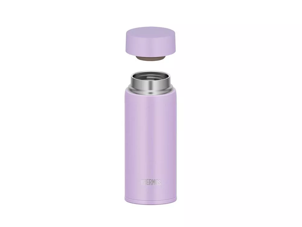 Миниатюрная и простая по внешнему виду термокружка серии JOQ от компании-создателя первого в мире термоса THERMOS вмещает в себя 350 мл напитка и сохранит его горячим или холодным в течение активного дня. Долгое поддержание температуры обеспечиваются за счет инновационных технологий, особенностей конструкции и премиум материалов, используемых в процессе производства. Технология вакуумной термоизоляции не только способствует сохранению температуру внутри, но и не позволяет корпусу термокружки нагреваться от горячих напитков или охлаждаться от прохладных, поэтому термокружку безопасно держать в руке, размещать в сумке и ставить на любые поверхности. Технология бесшовной сварки сохраняет вакуум в межстеночном пространстве на многие годы, обеспечивая прочность конструкции. Поэтому термокружка отличается долгим сроком службы, в течение которого её первоначальный вид останется без изменений благодаря износостойкому полимерно-порошковому покрытию. Особая технология нанесения покрытия делает поверхность термокружки фактурной и нескользящей, создавая приятное тактильное ощущение при удержании в руке. На ней не остаются следы от пальцев, а в случае загрязнения поверхность легко очищается обычными моющими средствами для посуды. Чтобы тщательно промыть и другие детали, крышка-пробка сделана разборной – корпус, единый с уплотнителем, легко отсоединяется от верхней крышки, достаточно сместить его в направлении стрелочки, указанной на основании крышки-пробки. Помимо гигиенической функции, глубокая крышка-пробка способствует теплосбережению и позволяет быстро открывать и закрывать термокружку. Для особого комфорта при питье края горлышка сделаны двуслойными и скруглёнными. Оптимальный размер питьевого отверстия позволяет использовать термокружку для хранения не только традиционных напитков, но и густых по консистенции, а также спортивного питания. Термокружка совместима с большинством кофемашин, легко поместится в автомобильный подстаканник или велодержатель. Все материалы, из которых изготовлен термос, экологически чистые, безопасные и практичные, не выделяют и не поглощают посторонние запахи, пригодны для вторичной переработки. Нержавеющая сталь 18/8 AISI 304 Stainless Steel, относящаяся к категории пищевой, делает термокружку прочной и долговечной, исключает химическое взаимодействие с содержимым, поэтому напитки остаются вкусными и ароматными. Герметичность обеспечивает прокладка из термостойкого пищевого силикона. Пробка из современного пластика, который не содержит бисфенол А (BPA free), устойчив к высоким температурам и механическим повреждениям. Термос полностью соответствует Международному стандарту качества EN12546-1:2000. Лаконичный дизайн, утончённая форма и нежный лавандовый цвет создают безупречный внешний вид термокружки, который обязательно оценят представительницы прекрасной половины человечества, как маленькие, так и взрослые.