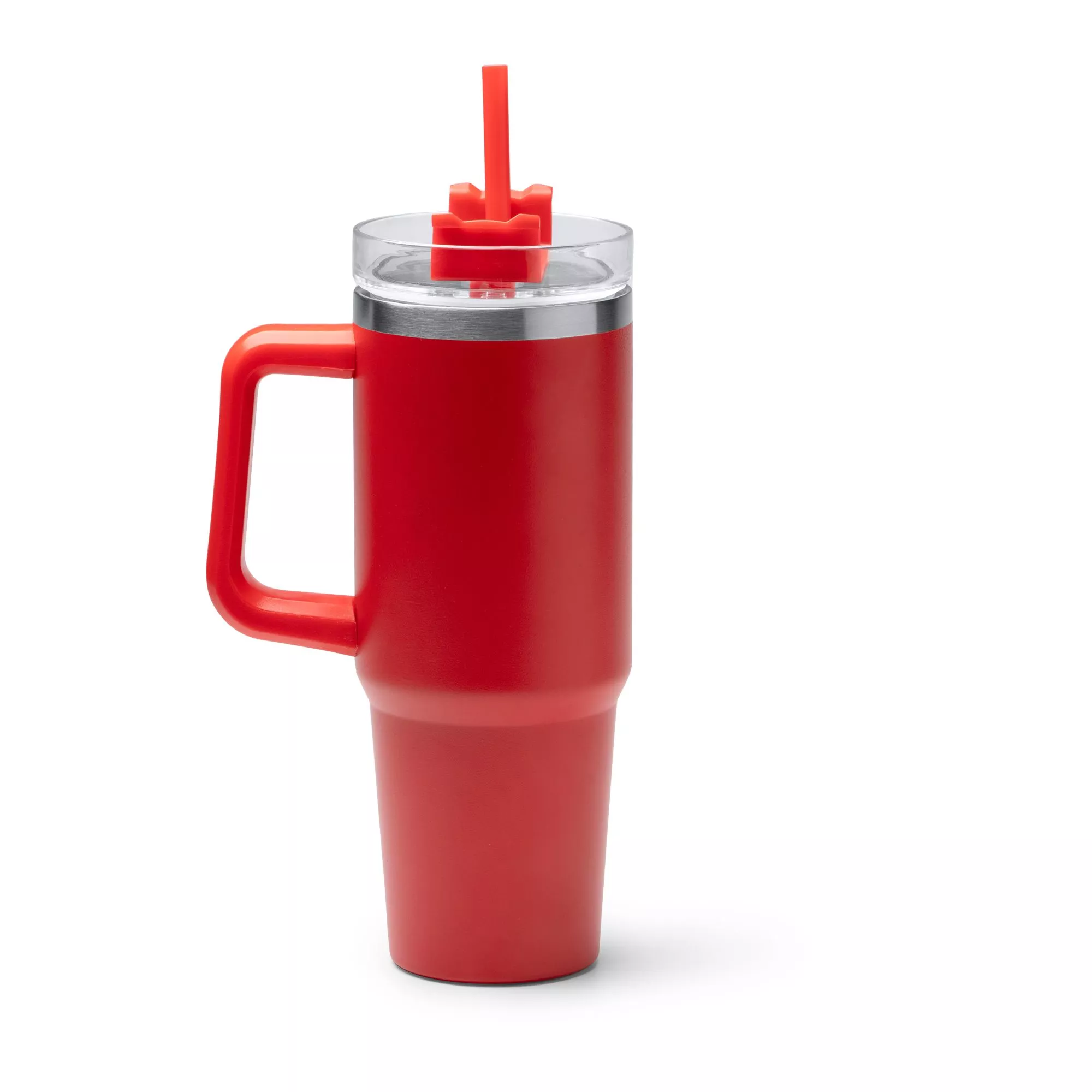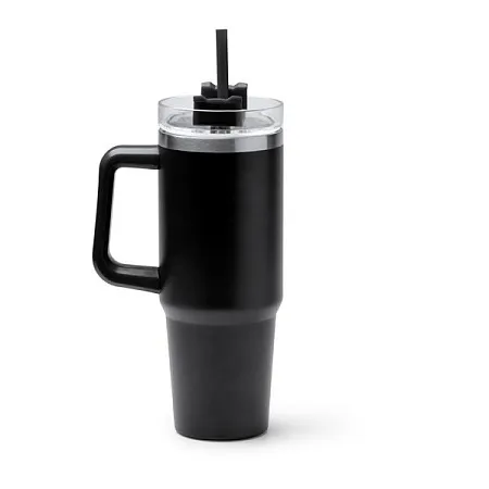 Термокружка из переработанной нержавеющей стали. Крышка с трубочкой и винтовой системой закрытия. Вместимость: 870 мл.