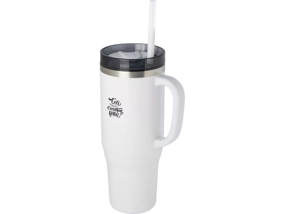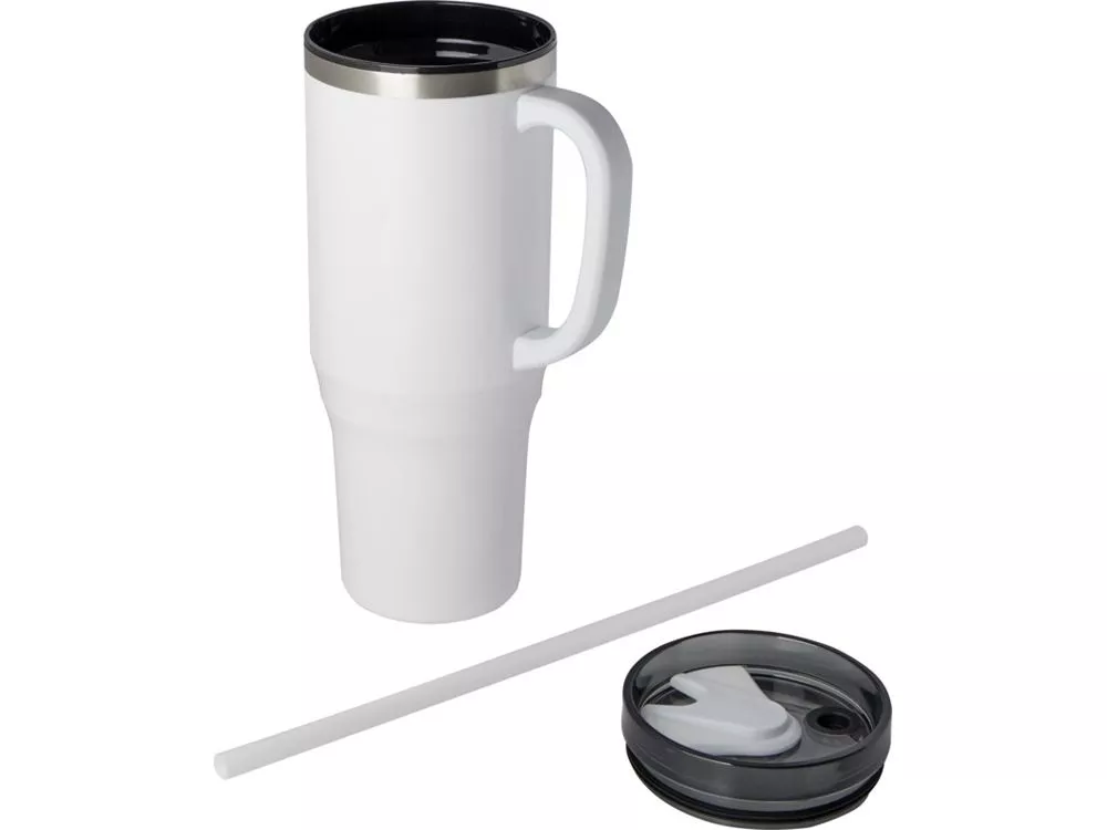 Кружка Melbourne имеет прочную конструкцию с двойными стенками, позволяющую сохранять напитки горячими или холодными в любых условиях. Внутренняя стенка кружки изготовлена из переработанного пластика, а внешняя — из переработанной нержавеющей стали, сертифицированной RCS. Кружка емкостью 1200 мл позволит вам стильно поддерживать водный баланс в течение дня. Имеет защитную крышку с двумя отверстиями и поворотным замком, который предотвращает разливание. В комплект входит соломинка из переработанных материалов для пищевых продуктов. Только ручная мойка. Recycled Plastic, 91% Recycled stainless steel.