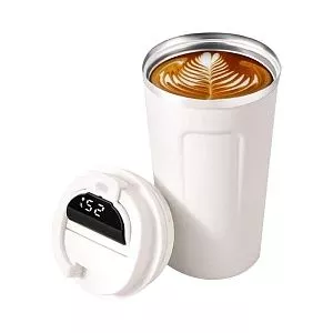 Термокружка Moon с дисплеем выполнена из нержавеющей стали. Имеет двойные стенки с вакуумной изоляцией, а крышка изготовлена из пищевого безопасного для человека пластика. Термокружка Moon не только сохраняет ваши напитки горячими, но и показывает температуру напитка! Уникальная особенность данной термокружки – наличие сенсорного индикатора температуры, расположенного в крышке. Чтобы узнать температуру напитка внутри кружки, достаточно прикоснуться к поверхности крышки. Работает от 1 батарейки типа CR2032 (в комплекте), которую в последующем можно самостоятельно заменить.