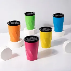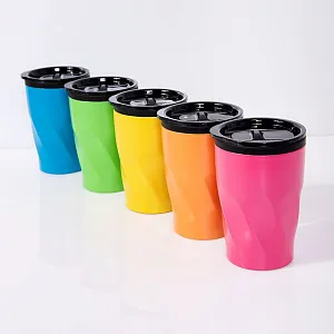 Коллекция дорожных промо-кружек NEON, отличается яркими цветами и оригинальной формой. Внимание: в этой модели пластиковая колба и стальные внешние стенки. Кружка не является вакуумной. Сохранит температуру горячих напитков - 1,5 часа, холодных 3 часа.