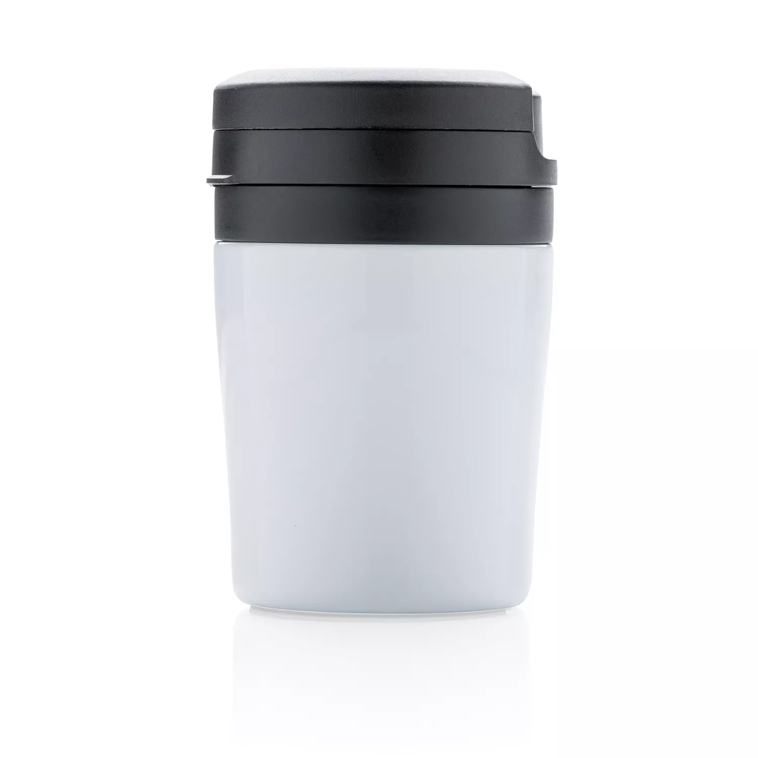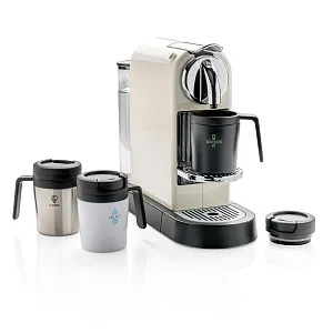 Высота кофейной термокружки Coffee-to-go составляет всего 8 см, поэтому она идеально подойдет для любой кофе-машины. Кружка изготовлена из нержавеющей стали, а удобная ручка, крышка с поворотным механизмом и внутренняя колба - из высококачественного полипропилена. Не подходит для мытья в посудомоечной машине. Объем термокружки составляет 160 мл. Зарегистрированный дизайн®