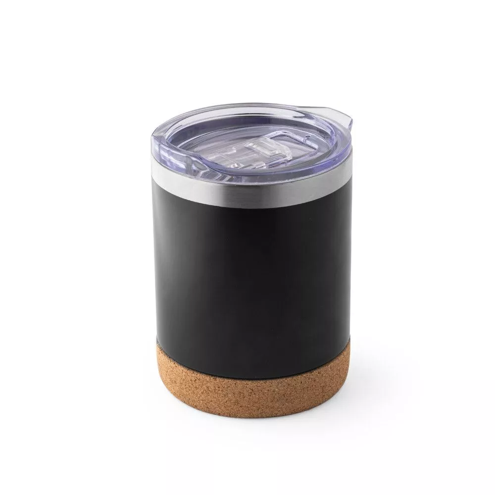 Стакан для путешествий из нержавеющей стали с вакуумной изоляцией и двойными стенками, с пробковым дном. Имеет прозрачную крышку с раздвижным замком и матовой отделкой. Емкость до 400 мл. Поставляется в крафт-коробке. Поскольку продукт изготовлен из натуральных материалов, цвет и результат печати могут отличаться в зависимости от продукта. Ø93 x 121 мм