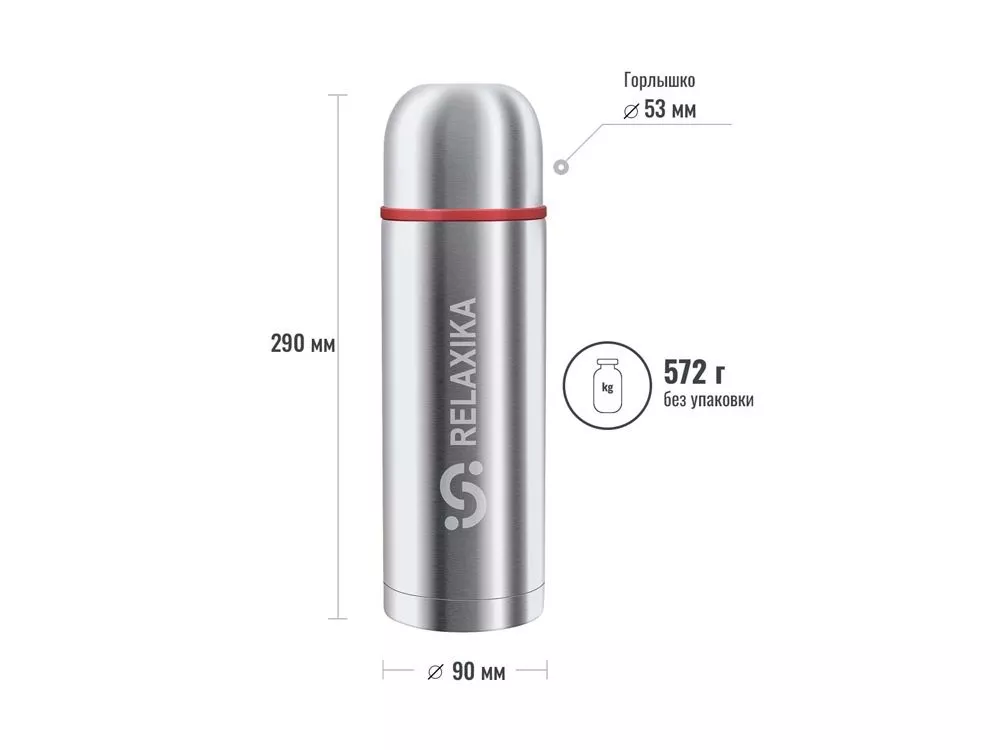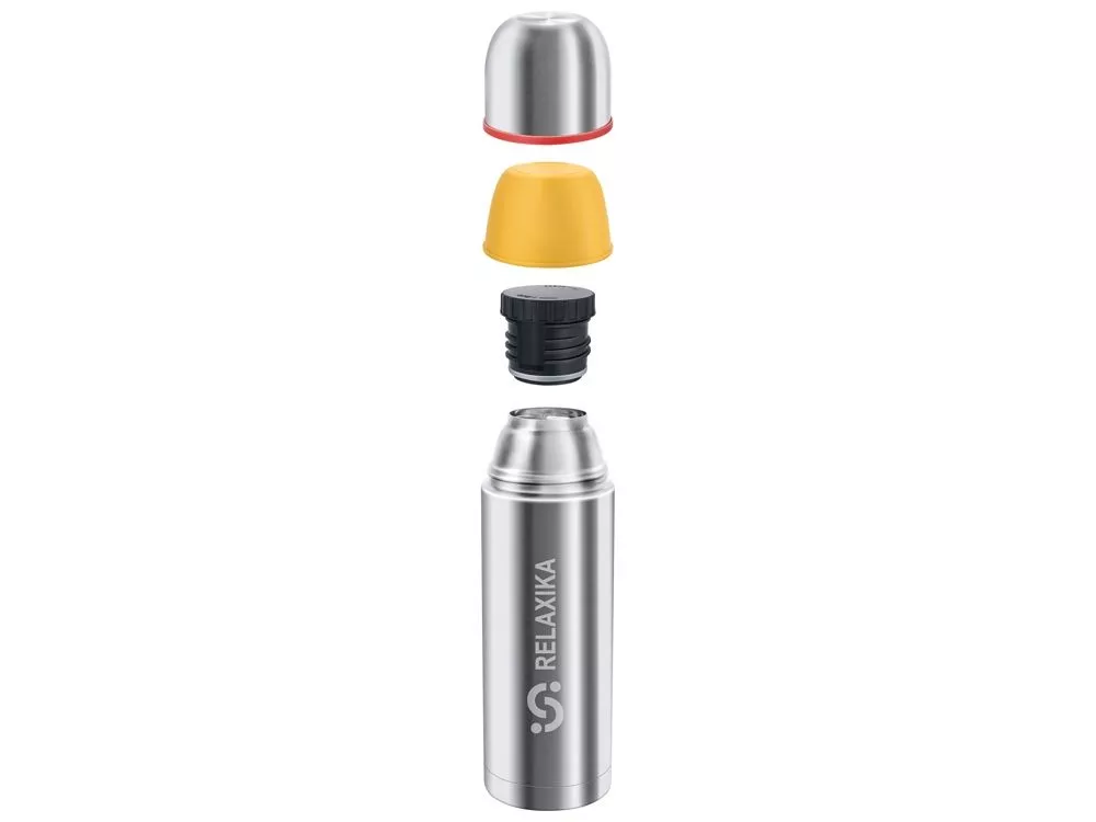 Классический термос Relaxika с двумя чашками и высокими показателями удержания температуры напитка для походов, путешествий, спорта и ежедневного использования. Прочные двойные стенки из высококачественной нержавеющей стали 18/8 с вакуумной изоляцией гарантируют, что ваш напиток останется холодным в течение 38 часов и горячим до 32 часов. Этот материал не только прочен, но и гигиеничен, не выделяет никаких вредных для здоровья веществ. Ваши напитки сохраняет естественный вкус и не приобретут посторонний запах. Напиток остается холодным до 38 часов и горячим до 32 часов 2 чашки. Узкое горлышко позволяет удерживать температуру максимально долго. Крышку термоса можно использовать как чашку. BPA Free. В пластмассах, используемых для производства термосов, отсутствует Бисфенол А – BPA признанный в мире вредным для здоровья человека. Надежная закручивающаяся пробка с силиконовым кольцом защищает от протекания и помогает удерживать температура. Высококачественная нержавеющая сталь 18/8.