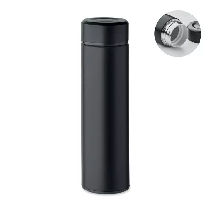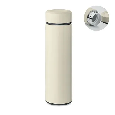 Двустенный термос из переработанной нержавеющей стали (90%) и обычной нержавеющей стали (10%) с внутренней керамической колбой. Герметичен. Объем: 420 мл.