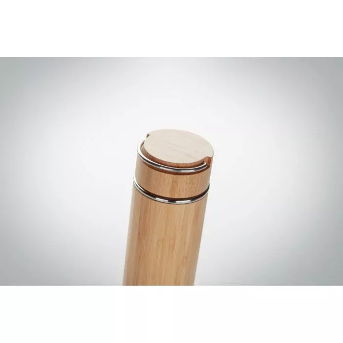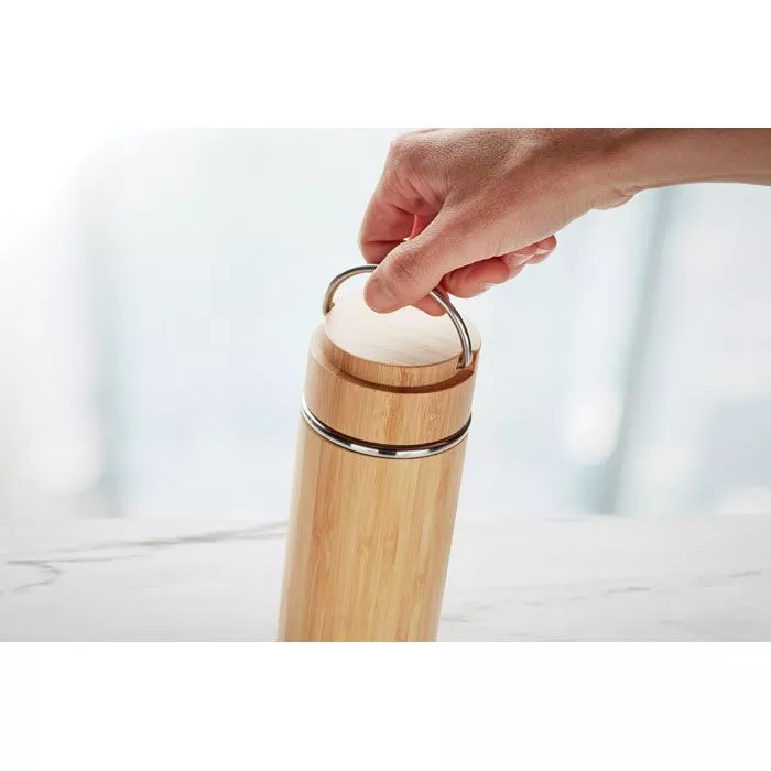Термос с двойными стенками из нержавеющей стали и бамбука с дополнительным заварочным ситечком внутри. Емкость: 480 мл. Полностью герметичен