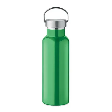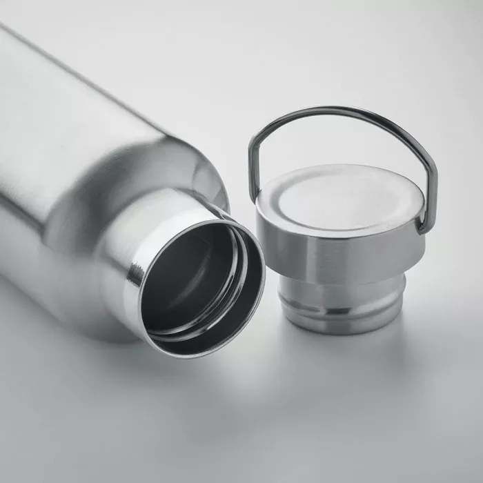 Термос с двойными стенками из переработанной нержавеющей стали 90% и 10% нержавеющей стали с крышкой и ручкой. Герметична. Объем: 500 мл.
