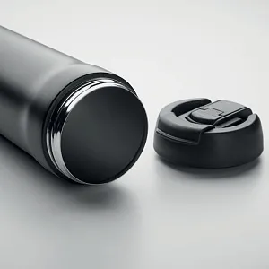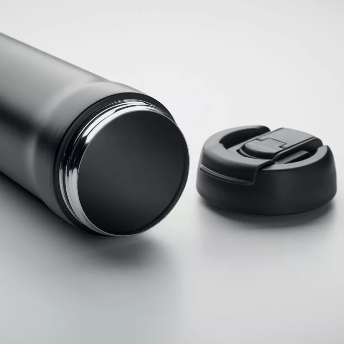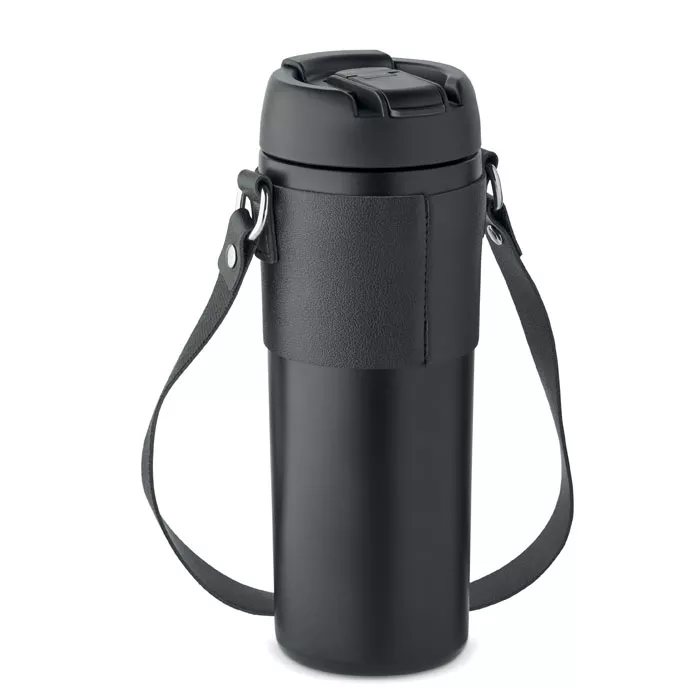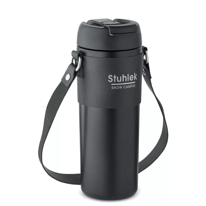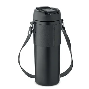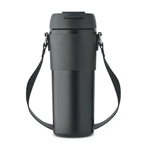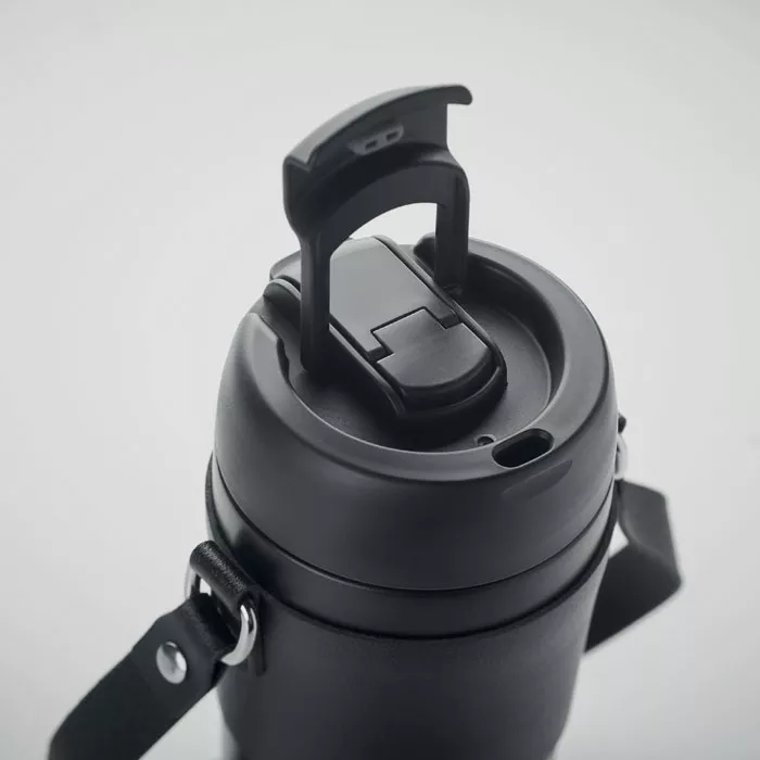 Термос с двойными стенками из нержавеющей стали, крышкой из полипропилена (крышка 2 в 1 с соломинкой) и полиуретановым ремешком для переноски. Герметичен. Емкость: 700 мл.