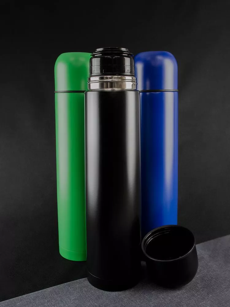 Двухслойная вакуумная конструкция из нержавеющей стали с завинчивающейся пробкой с клапаном.