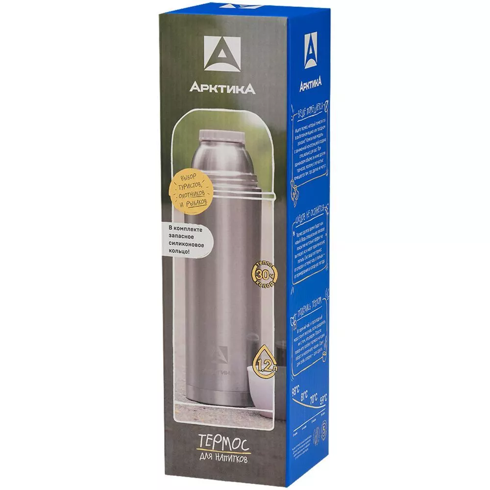 - Конструкция с двойными стенками и вакуумной изоляцией сохраняет температуру до 30 часов