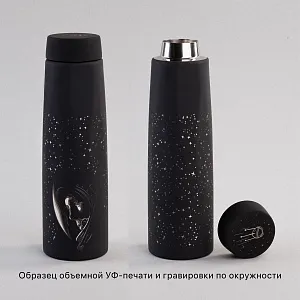 Образец термоса "CALYPSO" с гравировкой и объемной уф-печатью по окружности, зеркальная гравировка на крышке. Лаконичный и стильный макет, совмещение разных технологий = отличный результат! На образцы с нанесением действуют специальные условия, для уточнения скидки необходима авторизация.