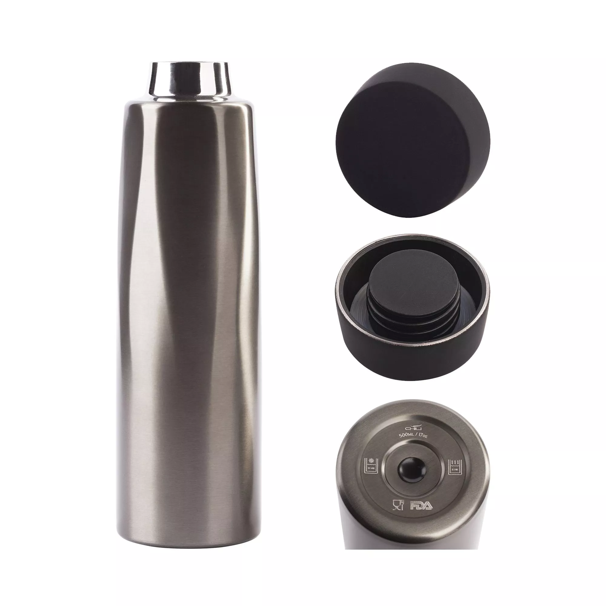 Стальной корпус термоса особенно выразительно подчеркивает рельефные «языки пламени», плавно переходящие в идеальный цилиндр. Крышка черного цвета выполнена в покрытии soft touch. Полностью герметичный. Компактный объём в 500 мл удобно брать с собой в путешествия, поездки или на прогулку. Горячий, согревающий напиток или прохладный освежающий коктейль – выбор за вами! Можно мыть в посудомоечной машине (без крышки).