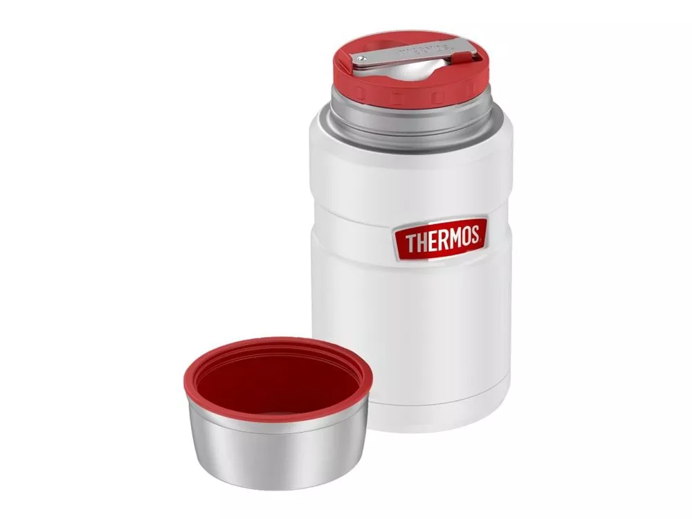 Термос для еды из линейки KING с благородным матово-черным покрытием - лучший вариант для автопутешествий, походов на пикник, рыбалки или охоты. Широкое горло, полноразмерная крышка - чашка и металлическая складная ложка, позволяют использовать термос для первых и вторых блюд. Небьющиеся стенки термоса из нержавеющей пружинной стали способны противостоять внешним повреждениям и вмятинам. Термос очень легкий и компактный, чем удобен в транспортировке и хранении. Держит тепло 14ч. Держит холод 24ч.