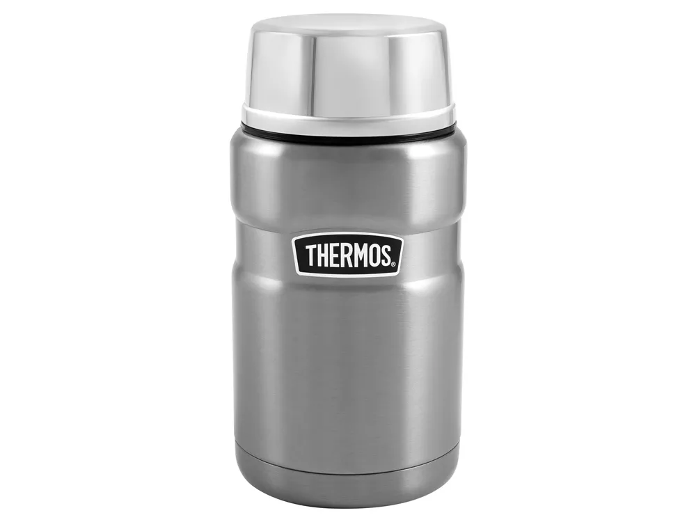 Термос для еды из линейки KING стального цвета - лучший вариант для автопутешествий, походов на пикник, рыбалки или охоты. Широкое горло, полноразмерная крышка-чашка и металлическая складная ложка, позволяют использовать термос для первых и вторых блюд. Небьющиеся стенки термоса из нержавеющей пружинной стали способны противостоять внешним повреждениям и вмятинам. Термос очень легкий и компактный, чем удобен в транспортировке и хранении. Держит тепло 14ч. Держит холод 24ч.