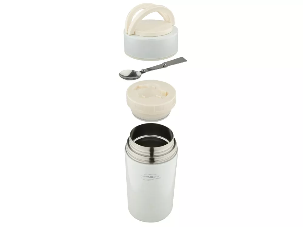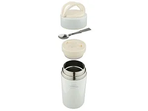 Термос для еды с широким горлом уже стал неизменным атрибутом для тех, кто заботится о качестве своего питания и предпочитает надежно сохранять еду, которую берет с собой. В комплекте поставляется складная ложечка, расположенная под крышкой. На крышке расположены две складные ручки, позволяющие комфортно носить термос в руках или убирать их в случае хранения в сумочке. Держит тепло 8ч. Держит холод 12ч.