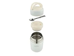 Термос для еды с широким горлом уже стал неизменным атрибутом для тех, кто заботится о качестве своего питания и предпочитает надежно сохранять еду, которую берет с собой. В комплекте поставляется складная ложечка, расположенная под крышкой. На крышке расположены две складные ручки, позволяющие комфортно носить термос в руках или убирать их в случае хранения в сумочке. Держит тепло 8ч. Держит холод 12ч.