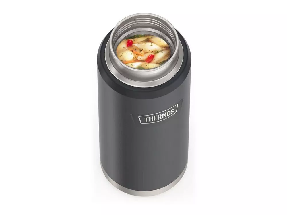 THERMOS, как компания-создатель первого в мире термоса, открывает новую эпоху изотермических товаров уникальной серией ICON™. Статус культовой она приобрела по достоинству, сочетая традиционное качество и инновации, призванные сделать жизнь людей комфортнее. Модель юбилейной линейки ICON™IS-212 GT впечатляет не только своим безупречным внешним видом, но и высокими температурными характеристиками. Благодаря глубокой вакуумной изоляции и особенностям конструкции содержимое термобутылки сохраняется горячим не менее 18 часов, а холодным – в течение суток. Оригинальность и эксклюзивность модели подтверждается пятью новыми патентами на элементы конструкции, обеспечивающие максимальное удобство при использовании термобутылки. Вместительный термос универсален и может пригодиться для хранения не только напитков, но и еды - за счёт горловины Dura-Use™, диаметр которой шире обычной. Еще одна особенность горловины – скруглённый край для комфорта при питье непосредственно из бутылки. Термобутылку легко носить в руке или прикрепить к рюкзаку благодаря оригинальной конструкции крышки-пробки Dura-Shield™ с прочной литой ручкой и рельефной накладкой с противоскользящим эффектом. Система быстрого открывания и закрывания Rapidcapтм минимизирует влияние температуры окружающей среды на содержимое термоса: достаточно повернуть крышку-пробку на один оборот. Корпус термобутылки отличается особой прочностью и не боится ударов за счёт усиленного дна. Для устойчивости на любых поверхностях термобутылка оснащена противоскользящим силиконовым основанием Griptec™. Благородный внешний вид термоса подчёркивает оригинальный дизайн и покрытие глубокого цвета тёмного гранита. Многослойное покрытие True-Coat™ нанесено по технологии порошкового полимерного напыления: создаёт приятный тактильный эффект при удержании термобутылки в руке, обеспечивает особую износостойкость и сохраняет первоначальный вид изделия на многие годы. Долговечностью отличается и логотип, нанесенный методом лазерной гравировки. Великолепная упаковка графитового цвета, декорированная серебристым тиснением, – ещё одно достоинство термоса как подарка. Все материалы, из которых изготовлен термос являются экологичными и безопасными. Корпус и колба из пищевой коррозионностойкой стали 18/8 AISI 304 Stainless Steel, которая отличается инертностью по отношению к содержимому и не влияет на его вкус, поэтому напитки и еда сохраняются в термосе ароматными и свежими долгое время. Крышка-пробка из термостойкого пищевого пластика, не содержит бисфенол А (BPA free), не впитывает и не поглощает посторонние запахи. Термос полностью соответствует Международному стандарту качества EN12546-1:2000.