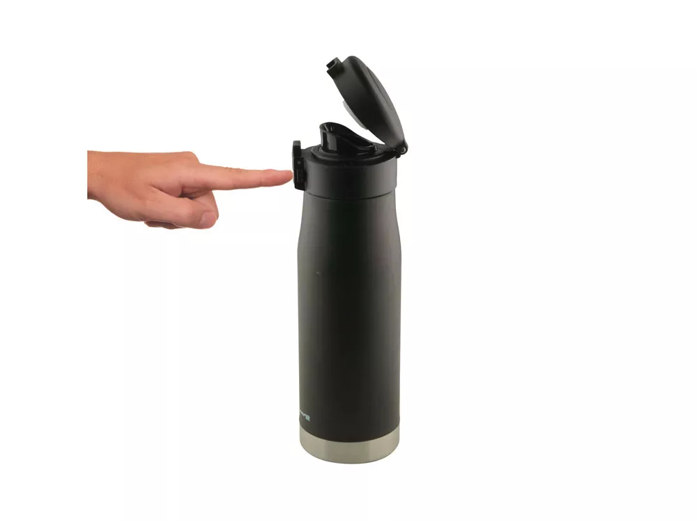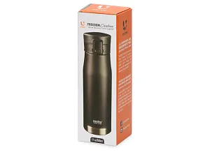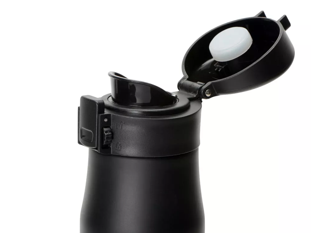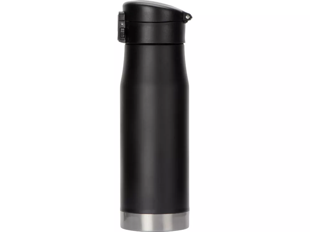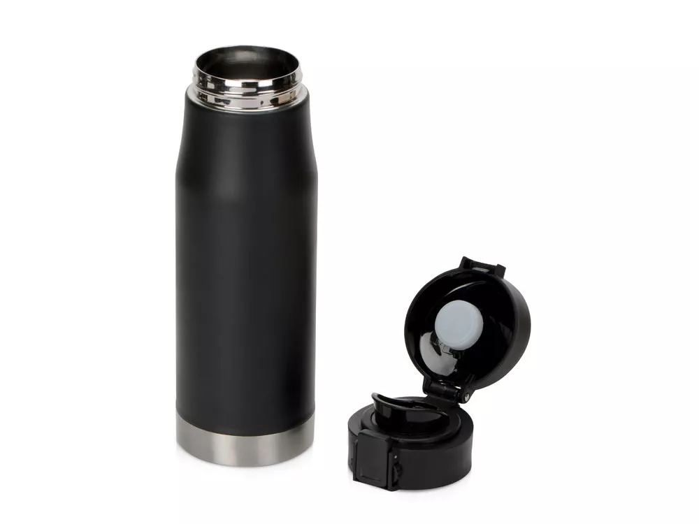 Матовый черный термос с блестящей отделкой дна. Герметичная крышка с откидным механизмом, кнопкой открывания и блокировкой от случайного нажатия защищают термос от проливания, благодаря чему содержимое вашей сумки всегда будет в безопасности с Liberty Canteen. Широкое горлышко позволяет удобно насыпать в термос лед и мыть внутреннюю колбу. - Герметичность: крышка оснащена блокировкой от случайного нажатия - Двойные стенки с вакуумной изоляцией между ними - Пищевая нержавеющая сталь 18/8 с содержанием никеля и хрома, стойкая к коррозии - Сохраняет температуру холодных напитков до 24 часов, горячих – до 12 часов - Поставляется в индивидуальной коробке с цветной печатью или подарочном картонном тубусе Трафаретная печать круговая (1 цвет (цветные изделия)) на данный товар осуществляется бесплатно. Оплачивается только настройка оборудования в размере 5700 рублей на весь тираж.