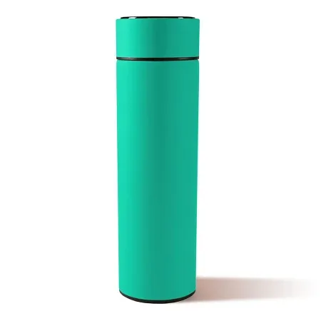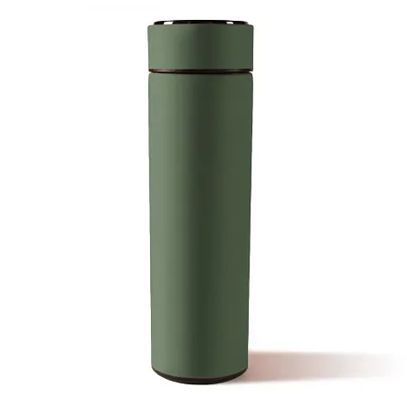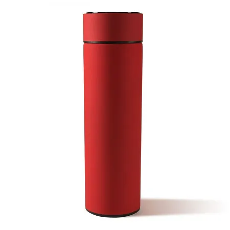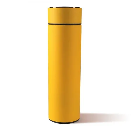 Термос из нержавеющей стали, покрытый цветным soft touch, с крышкой, в которой встроен термометр и LED дисплей, показывающий температуру внутри термоса. Объем: 500 мл. Упаковка: каждый термос в крафт коробке.